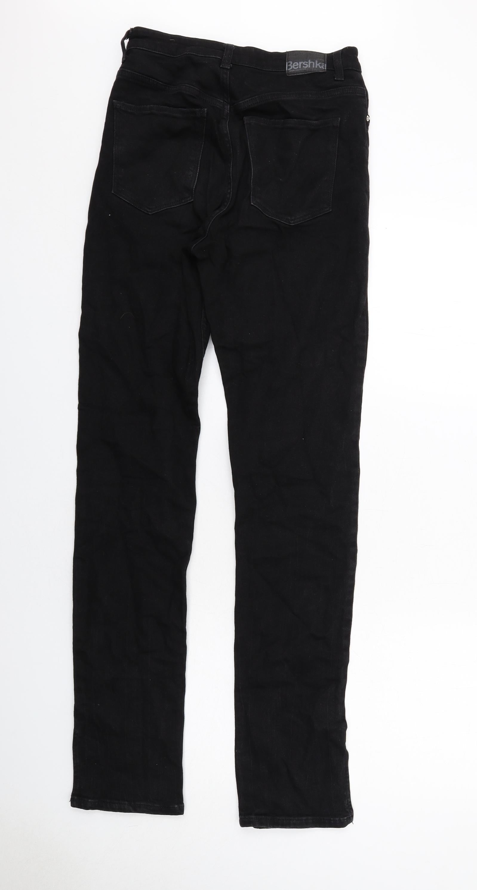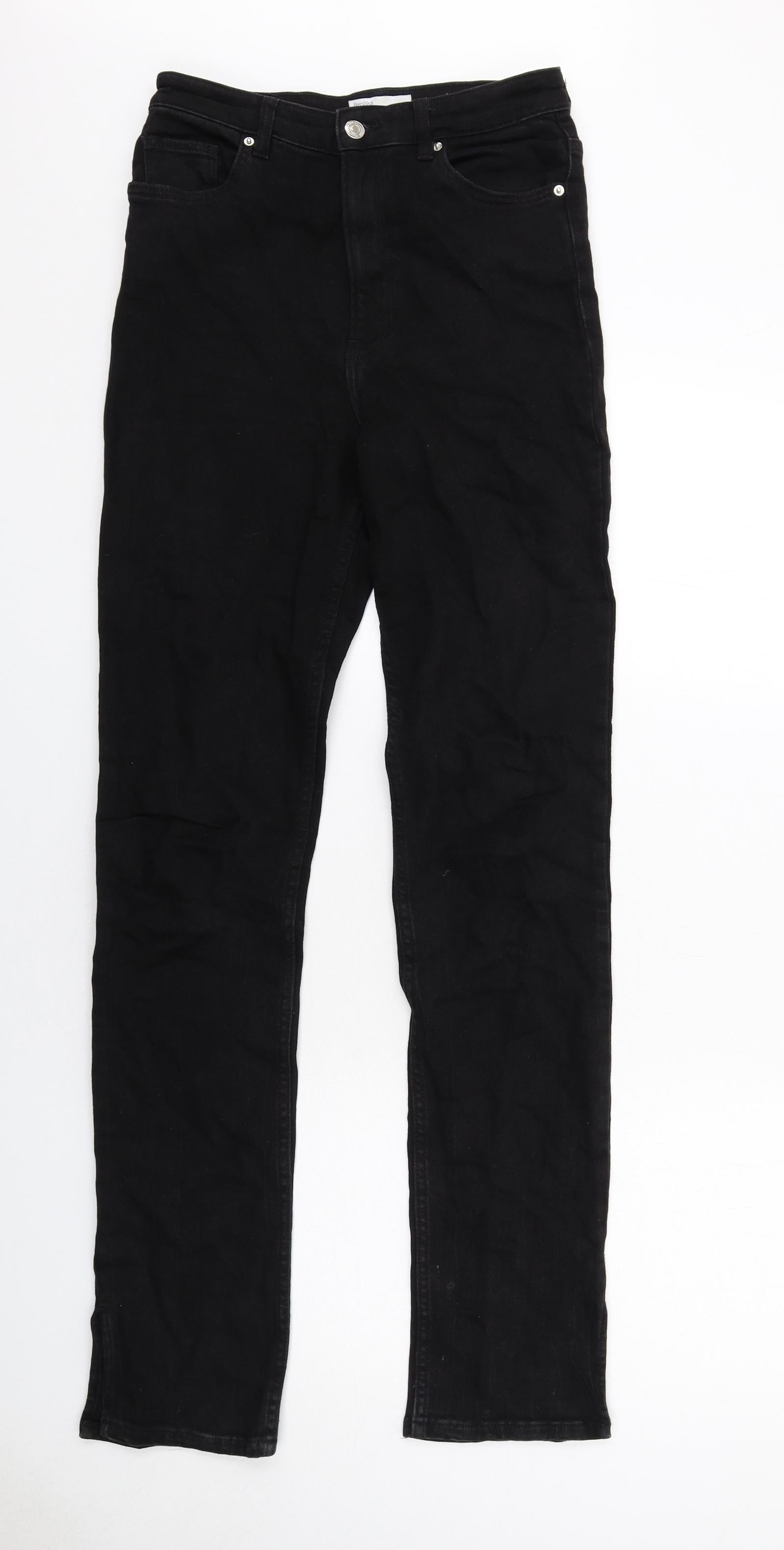 Bershka Womens Black Cotton Straight Jeans Size 10 Regular Zip