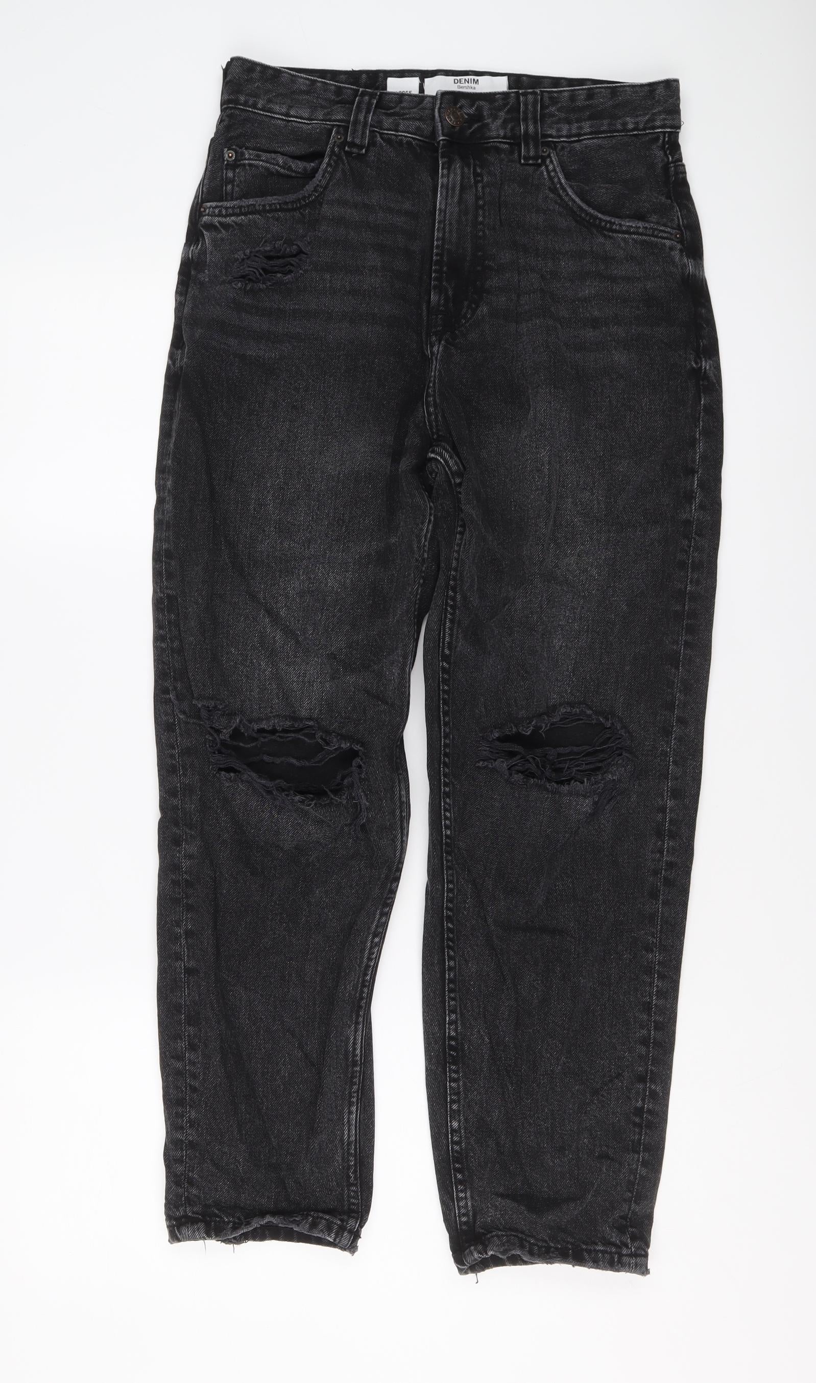 Bershka Womens Black Cotton Straight Jeans Size 8 L26 in Regular Button