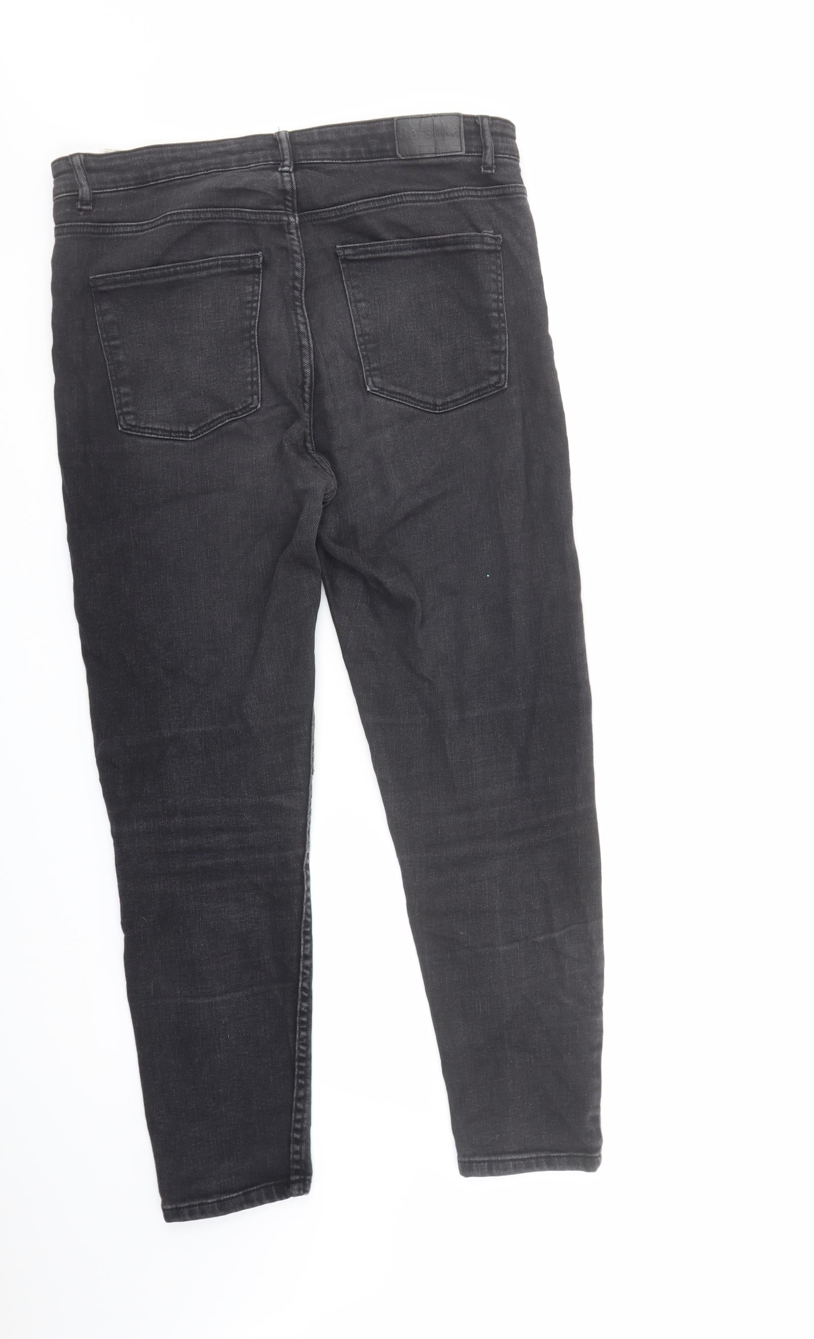Bershka Womens Black Cotton Tapered Jeans Size 12 L28 in Regular Zip