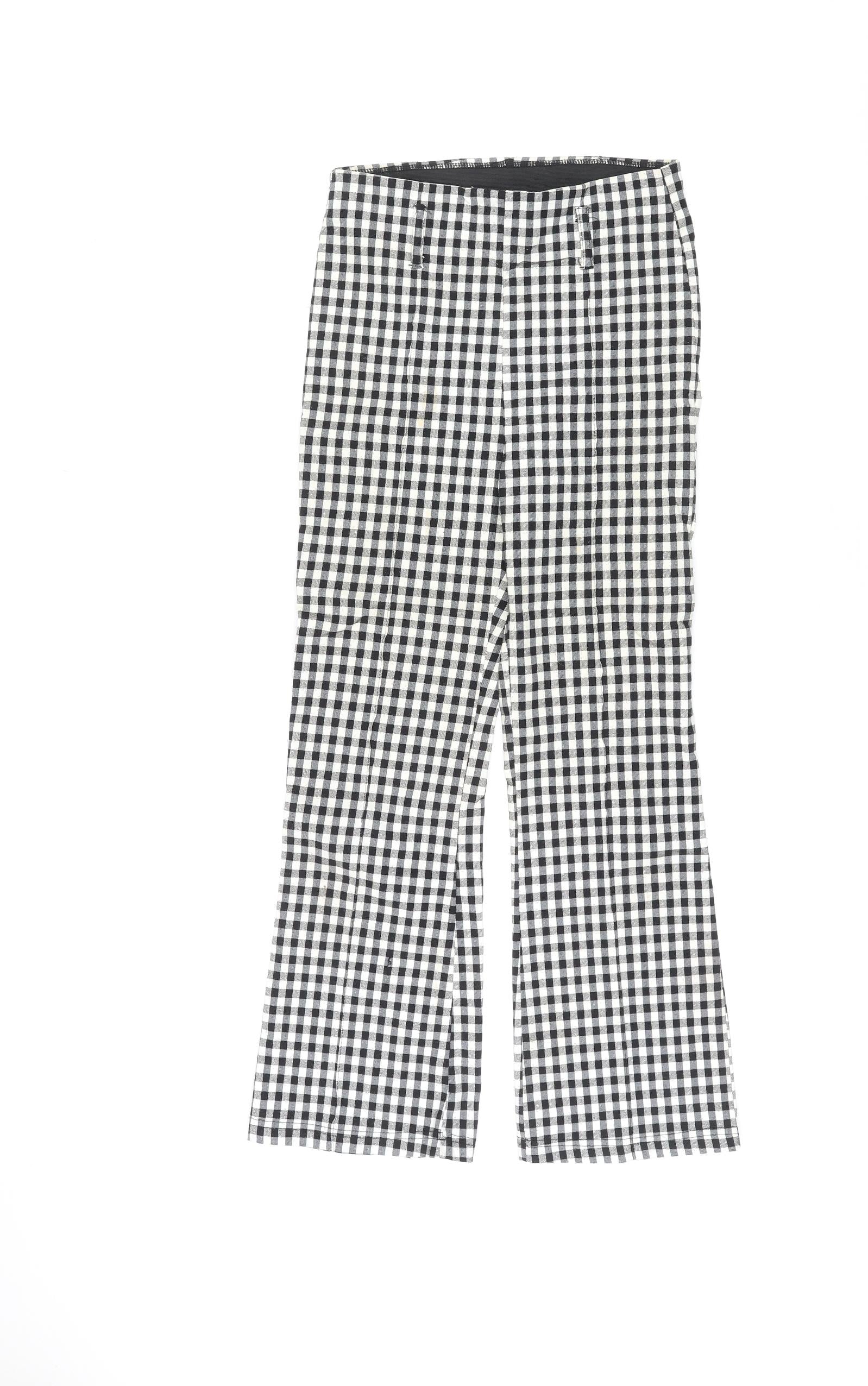 Bershka Womens Black Plaid Viscose Trousers Size S L25 in Regular