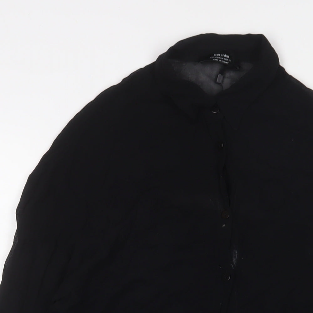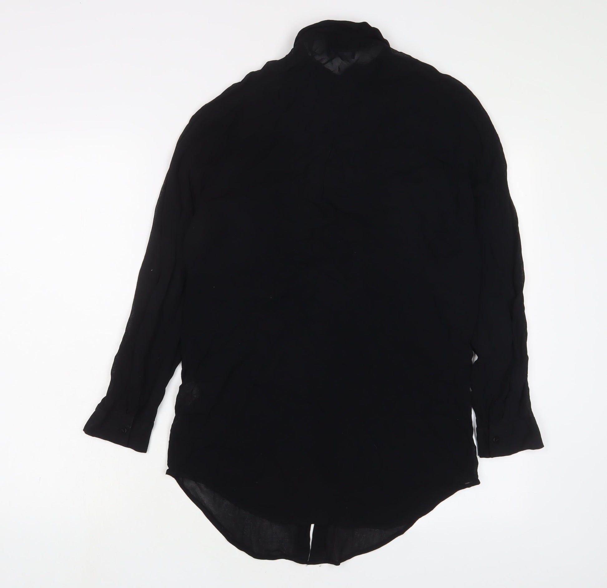 Bershka Womens Black Polyester Basic Button-Up Size S Collared