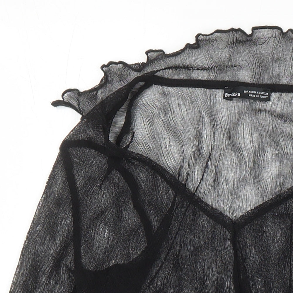 Bershka Womens Black Polyester Cropped Blouse Size XS V-Neck
