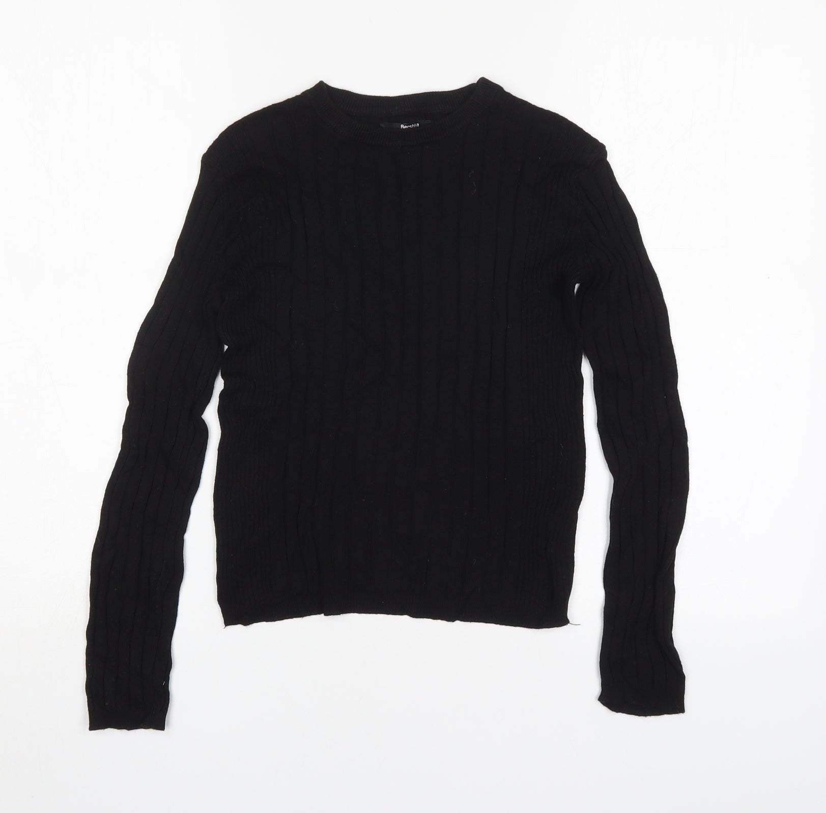Bershka Womens Black Round Neck Cotton Pullover Jumper Size M