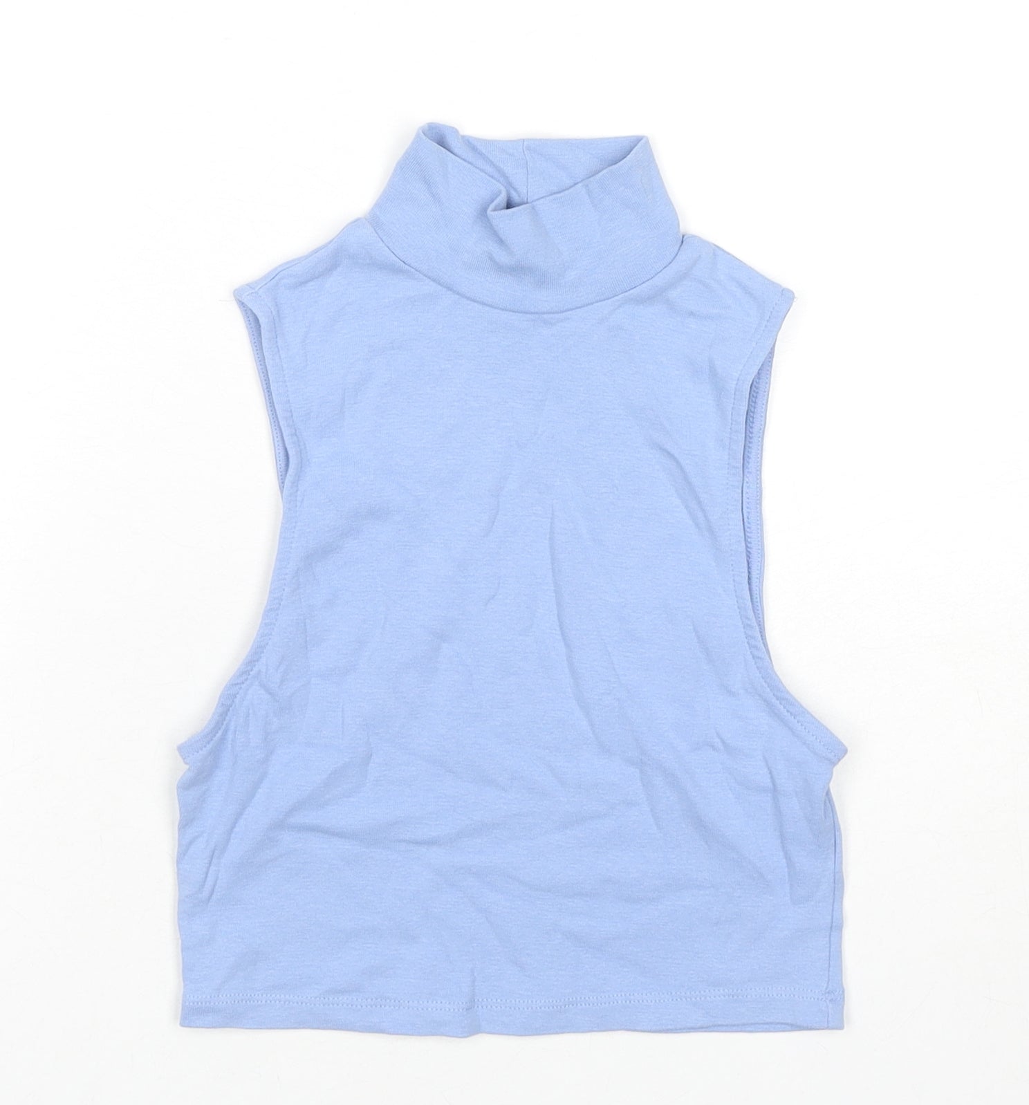Bershka Womens Blue Cotton Cropped Tank Size S High Neck