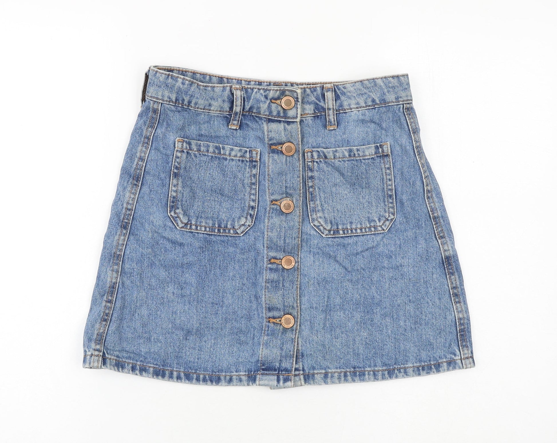 Bershka Womens Blue Cotton Mini Skirt Size 6 Button