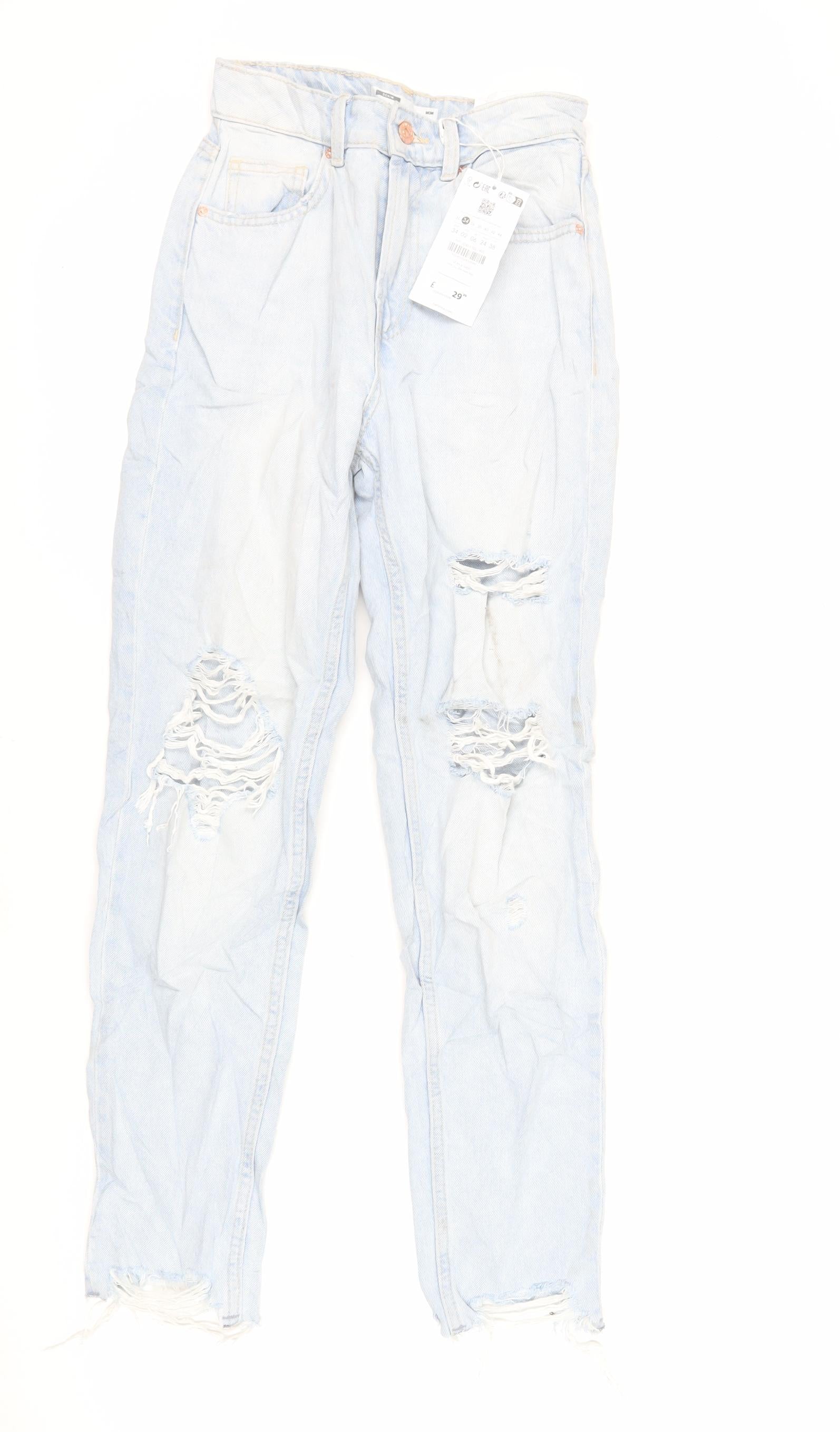 Bershka Womens Blue Cotton Mom Jeans Size 6 L28 in Regular Zip