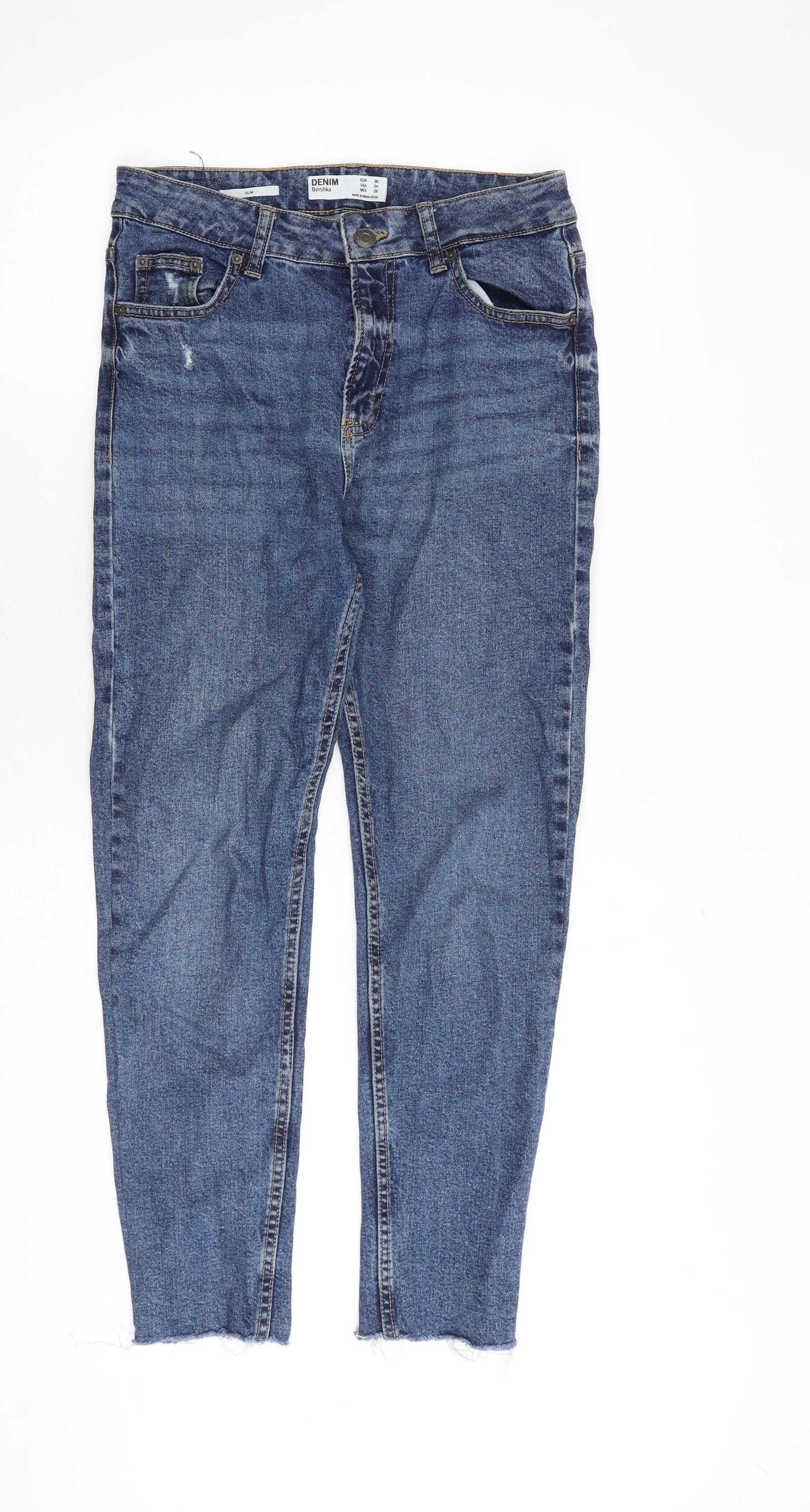 Bershka Womens Blue Cotton Skinny Jeans Size 8 Regular Zip