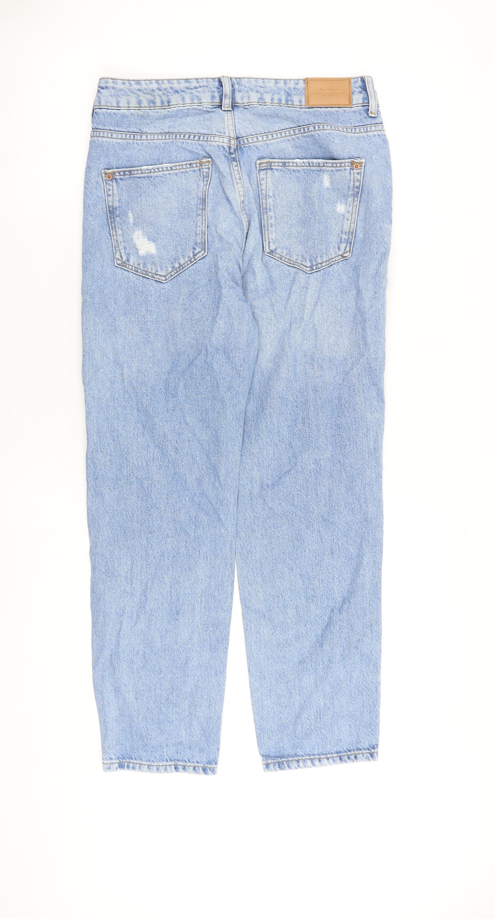 Bershka Womens Blue Cotton Straight Jeans Size 8 L26 in Regular Zip