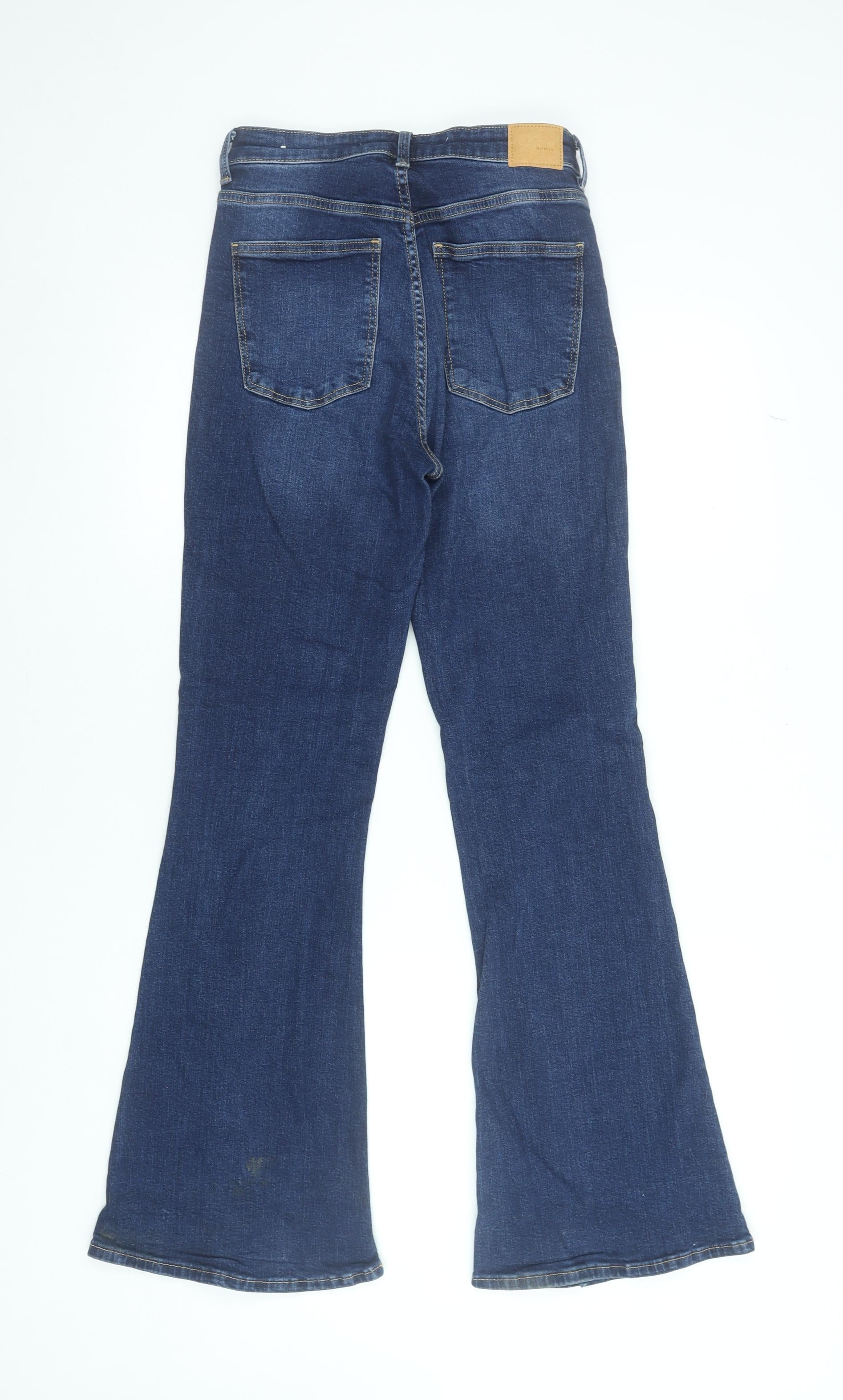 Bershka Women's Blue Flared Denim Jeans Size 10 Regular Stretch
