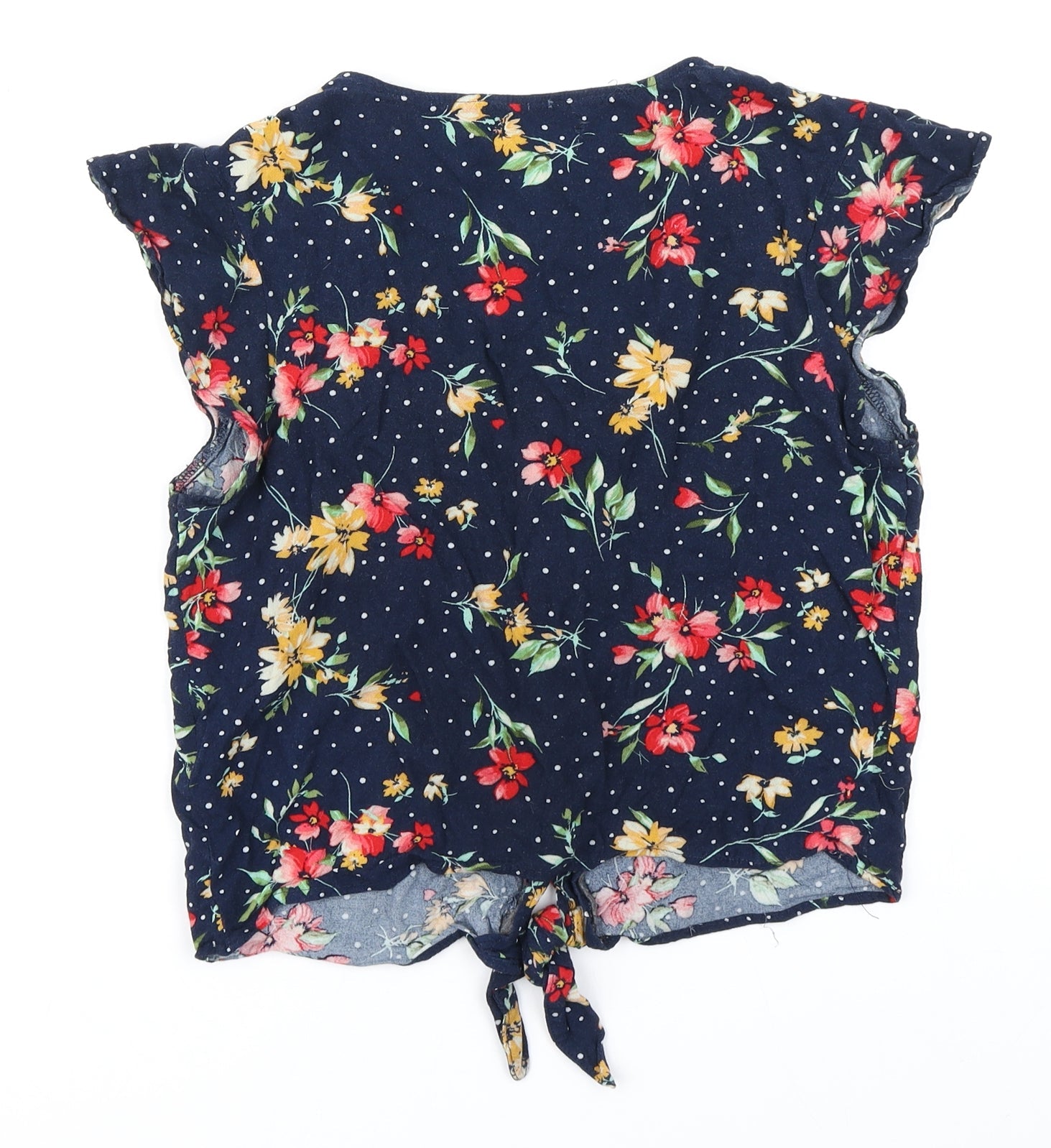 Bershka Womens Blue Floral Cropped T-Shirt Size S