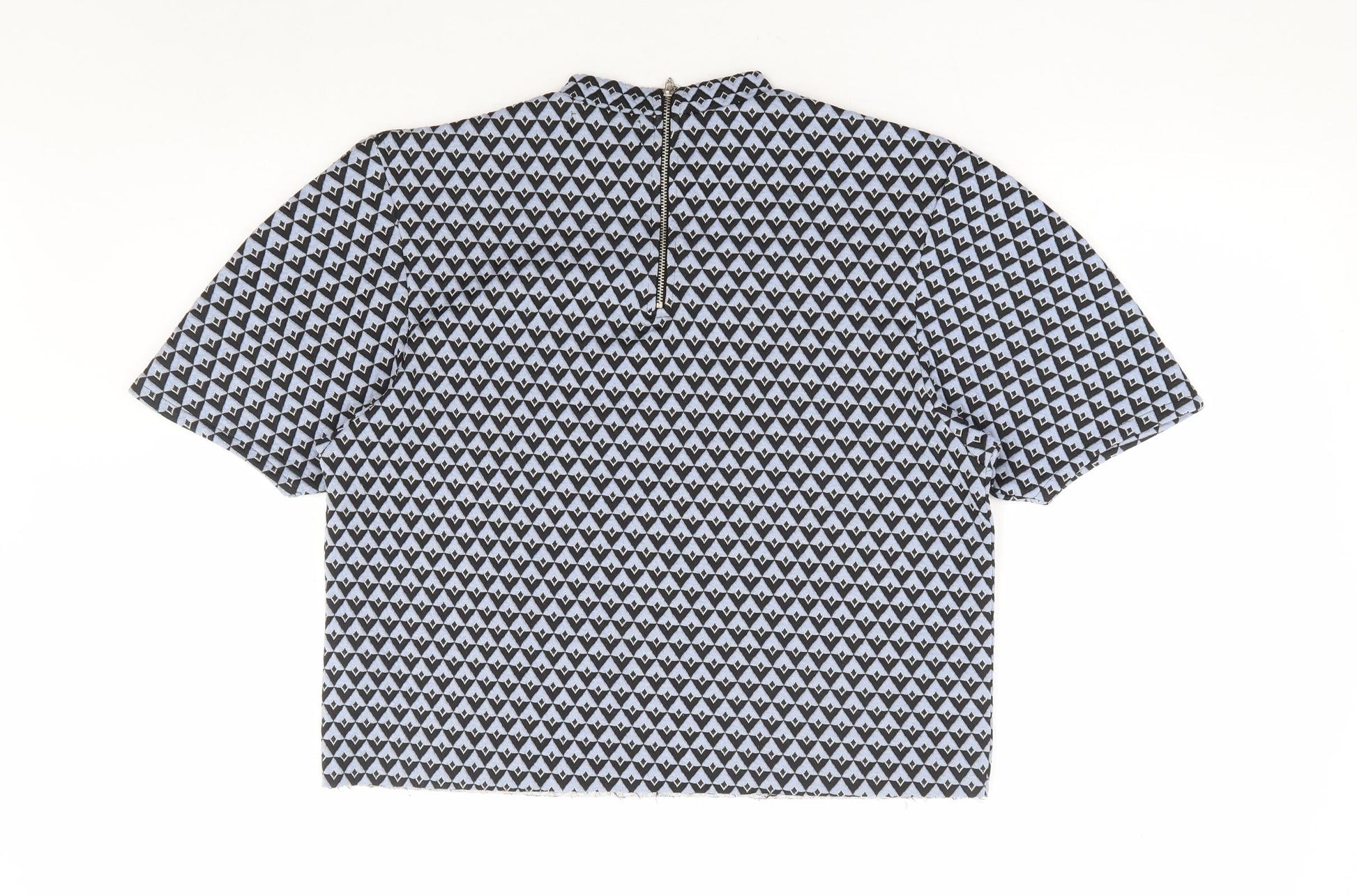 Bershka Womens Blue Geometric Polyester Basic T-Shirt Size M Mock Neck