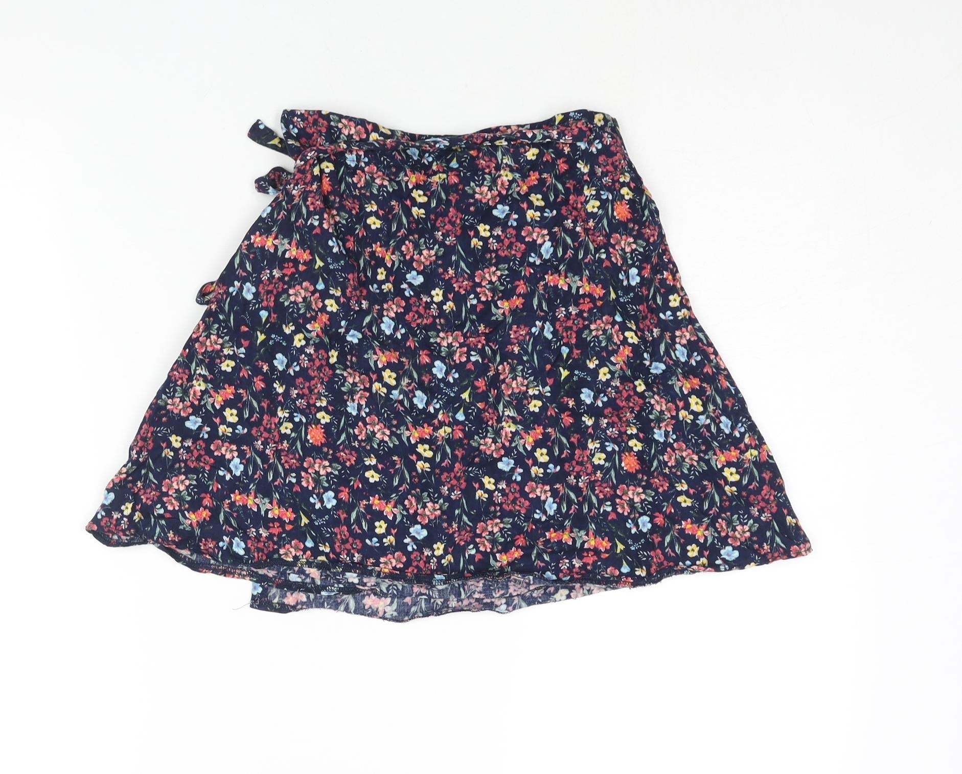 Bershka Womens Blue Geometric Viscose Wrap Skirt Size XS Tie - Floral Print