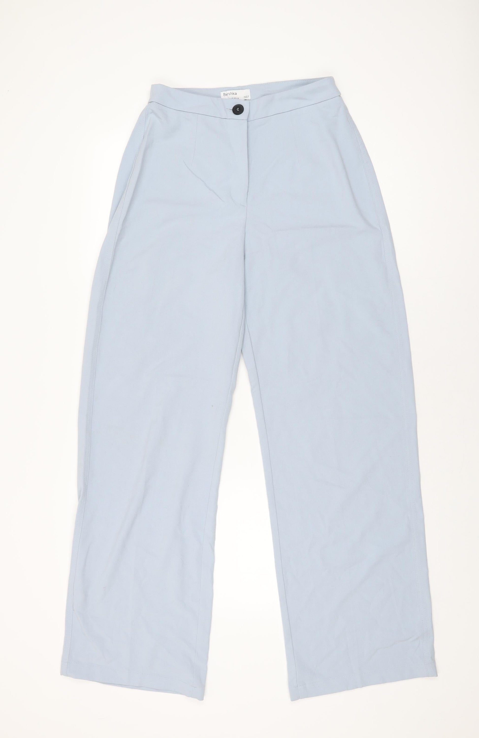 Bershka Womens Blue Polyester Trousers Size 10 L32 in Regular Zip