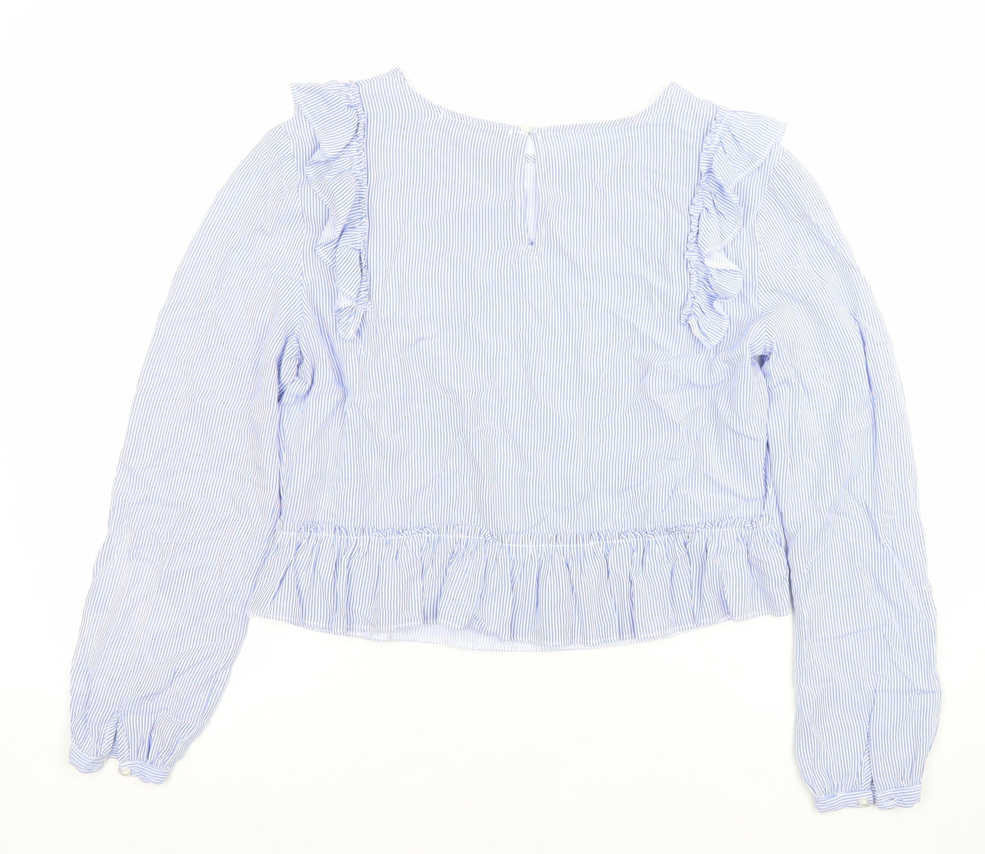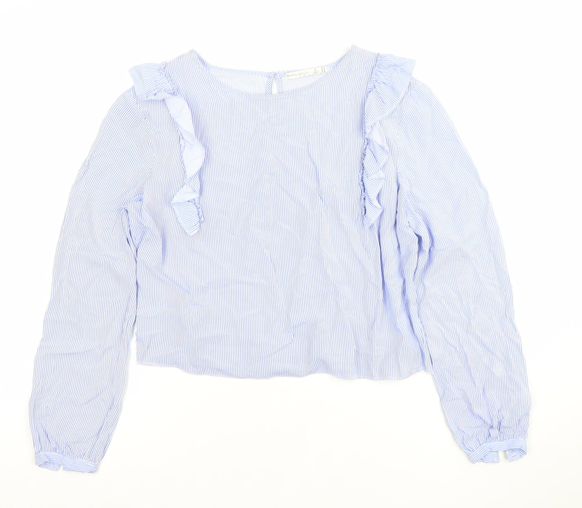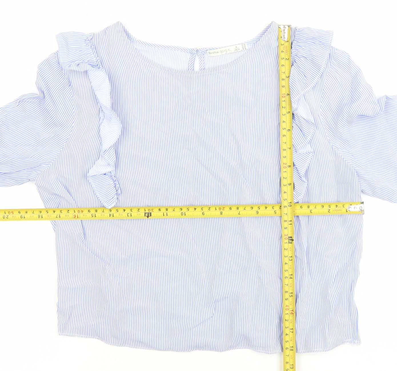 Bershka Womens Blue Striped Ruffle Blouse Size M