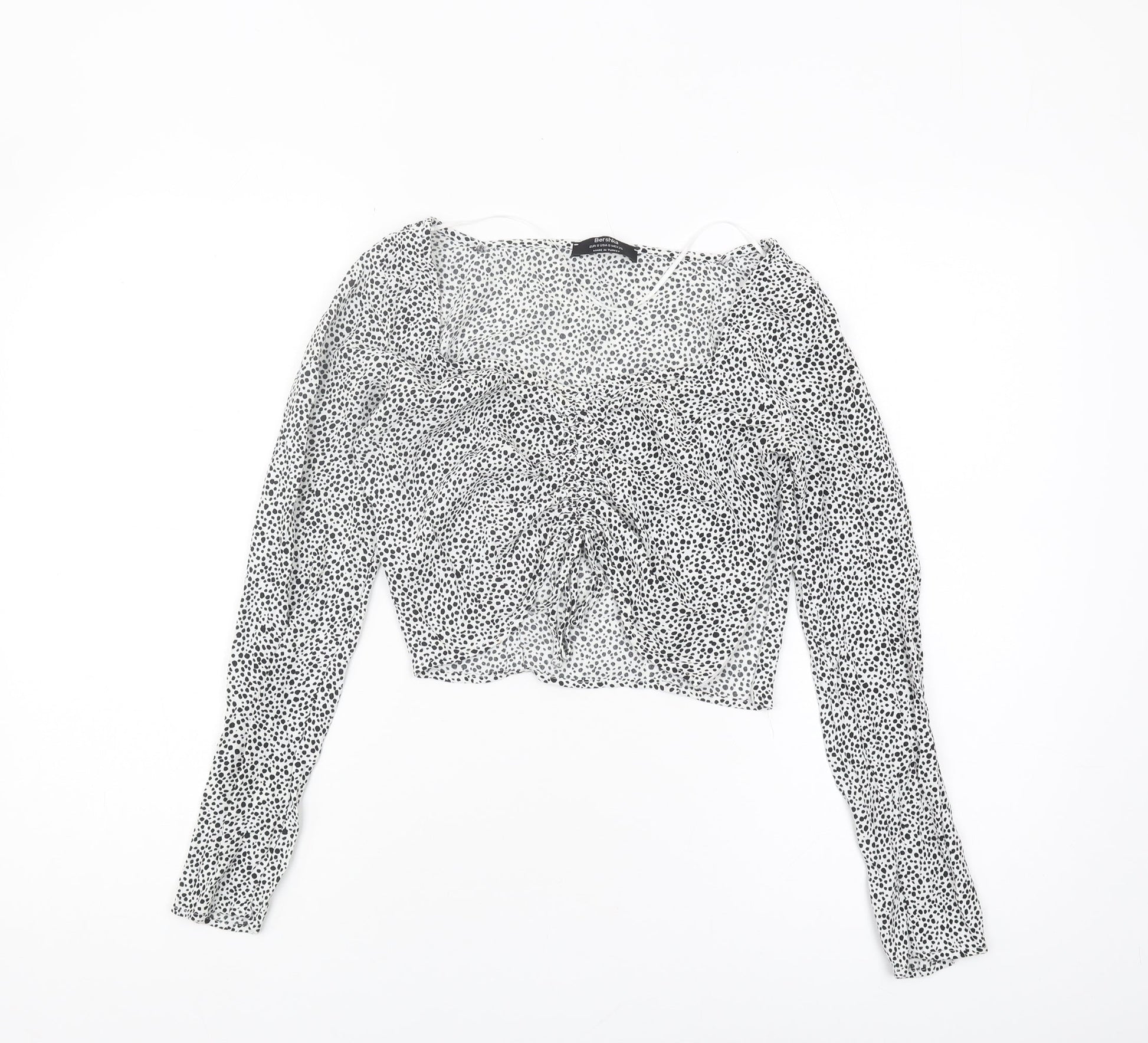 Bershka Women's Cropped V-Neck Blouse - Size S
