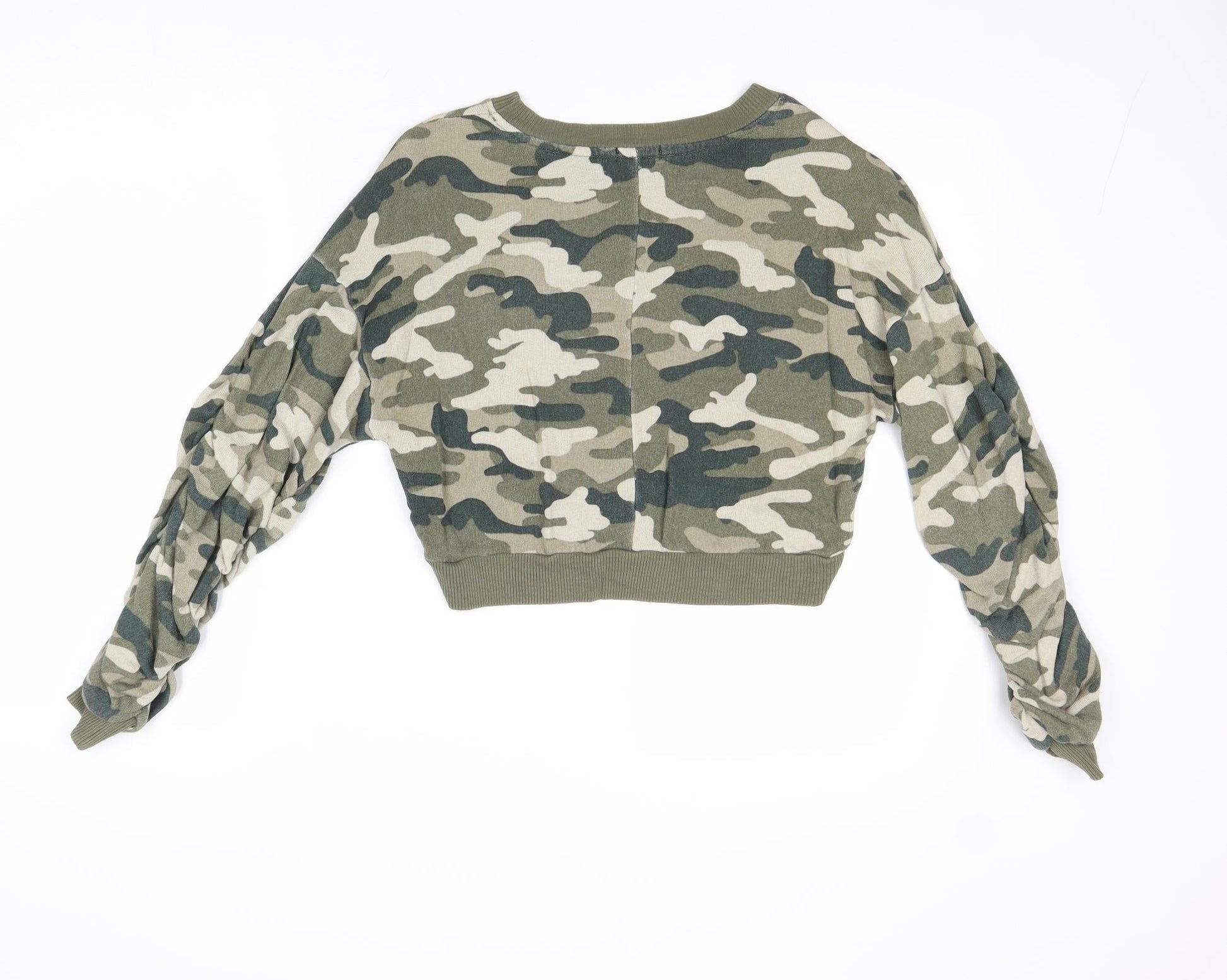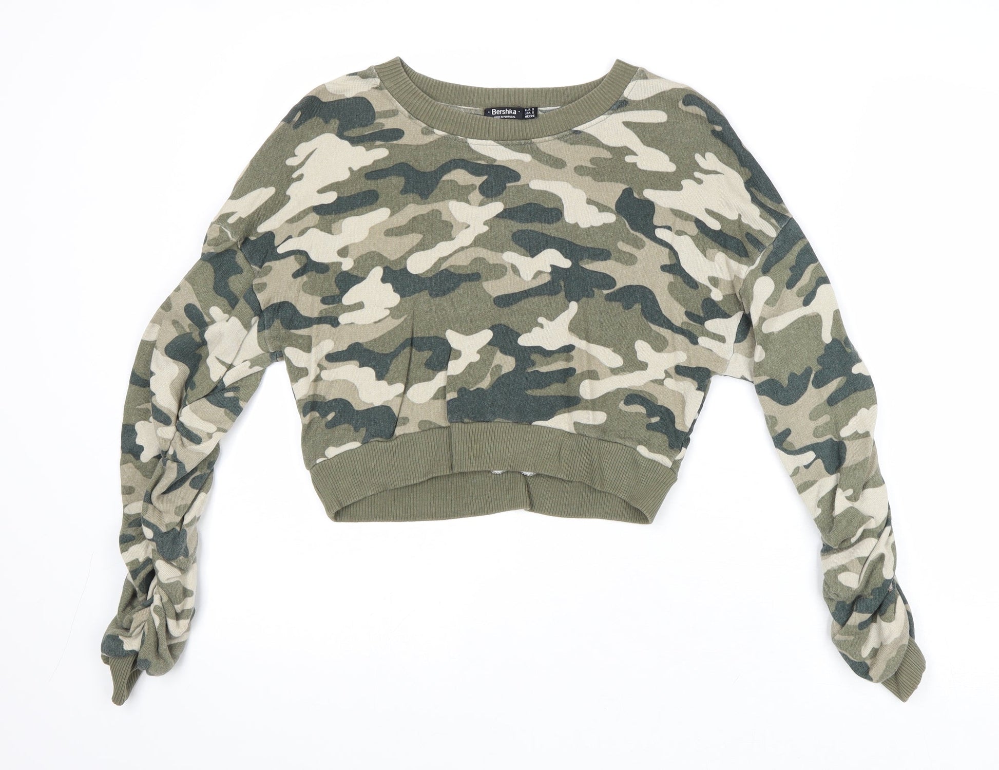 Bershka Womens Green Camouflage Polyester Pullover Sweatshirt Size S Pullover - Gathered Sleeves