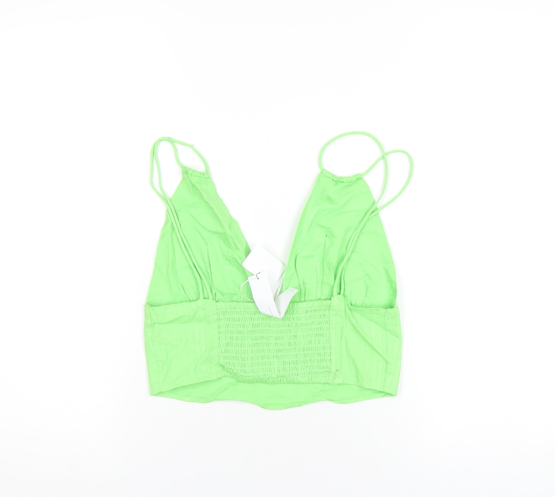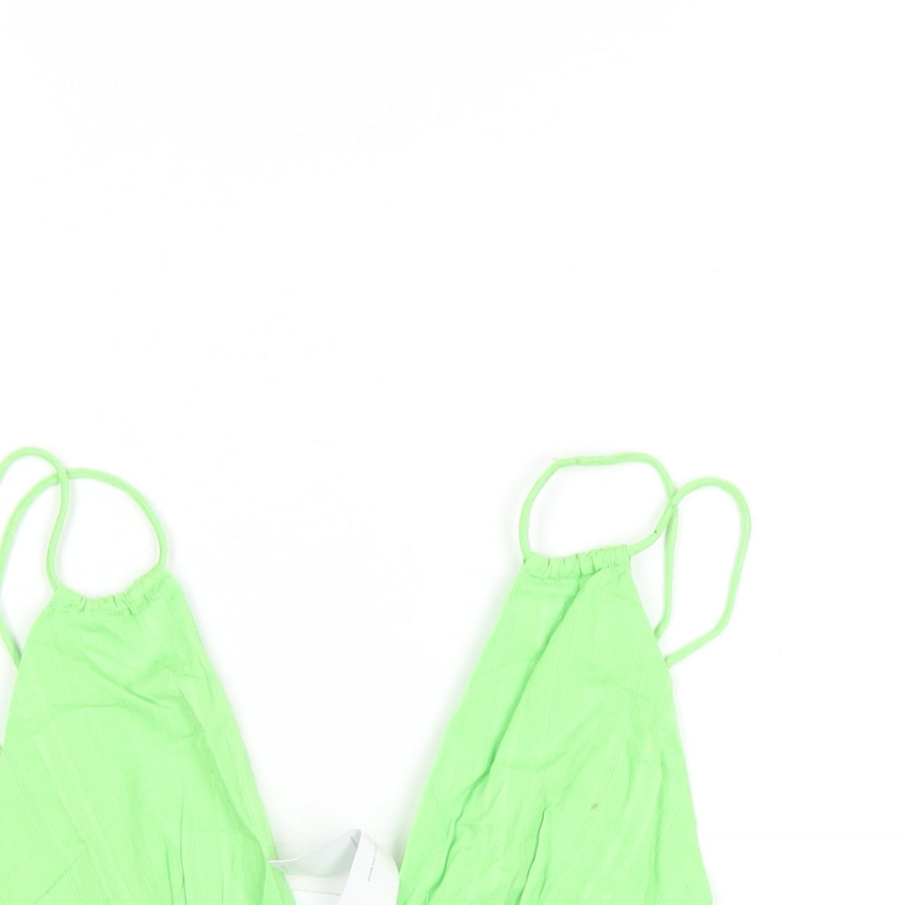 Bershka Womens Green Cotton Cropped T-Shirt Size M V-Neck