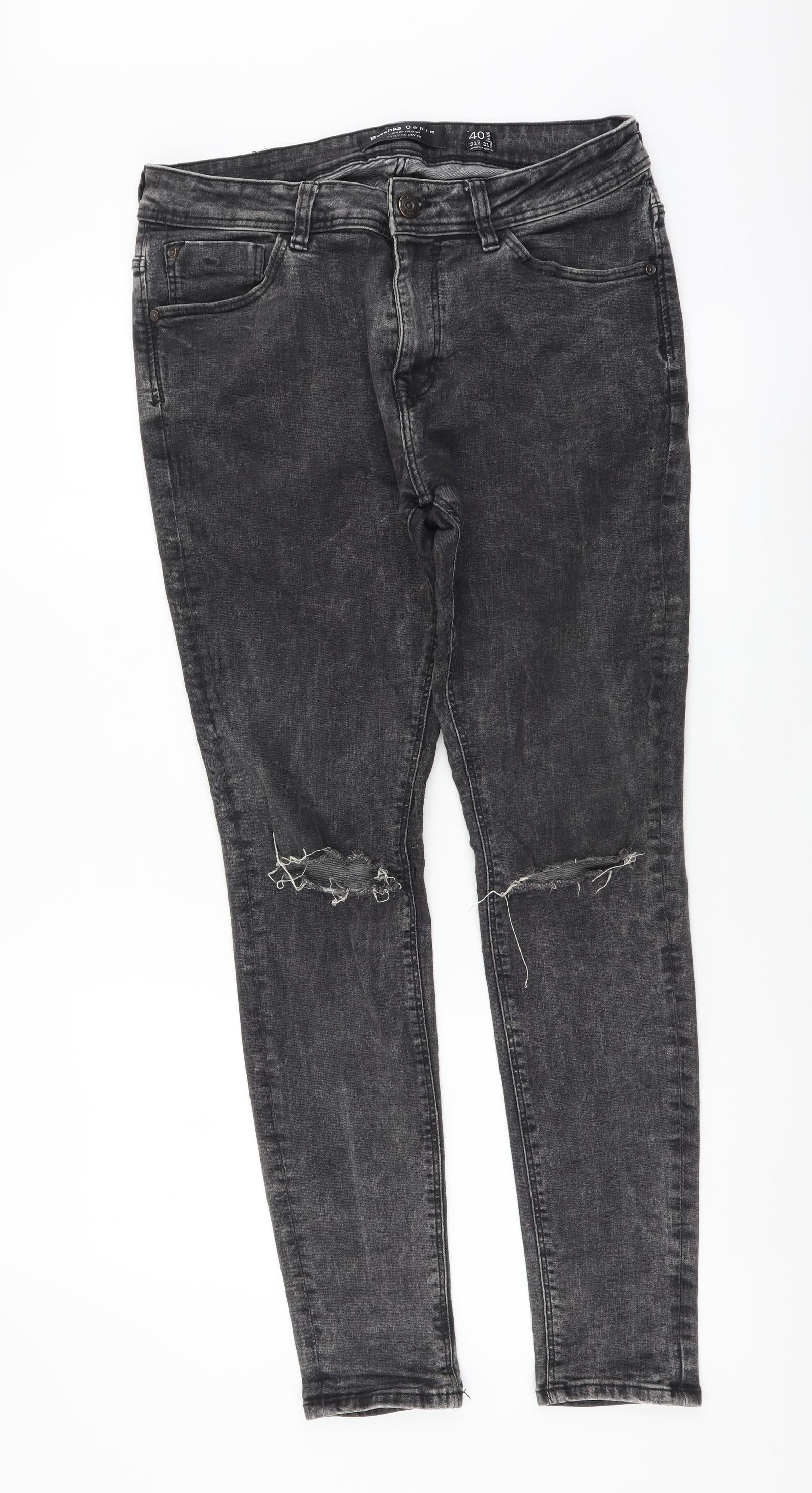 Bershka Womens Grey Cotton Skinny Jeans Size L L28 in Regular Button