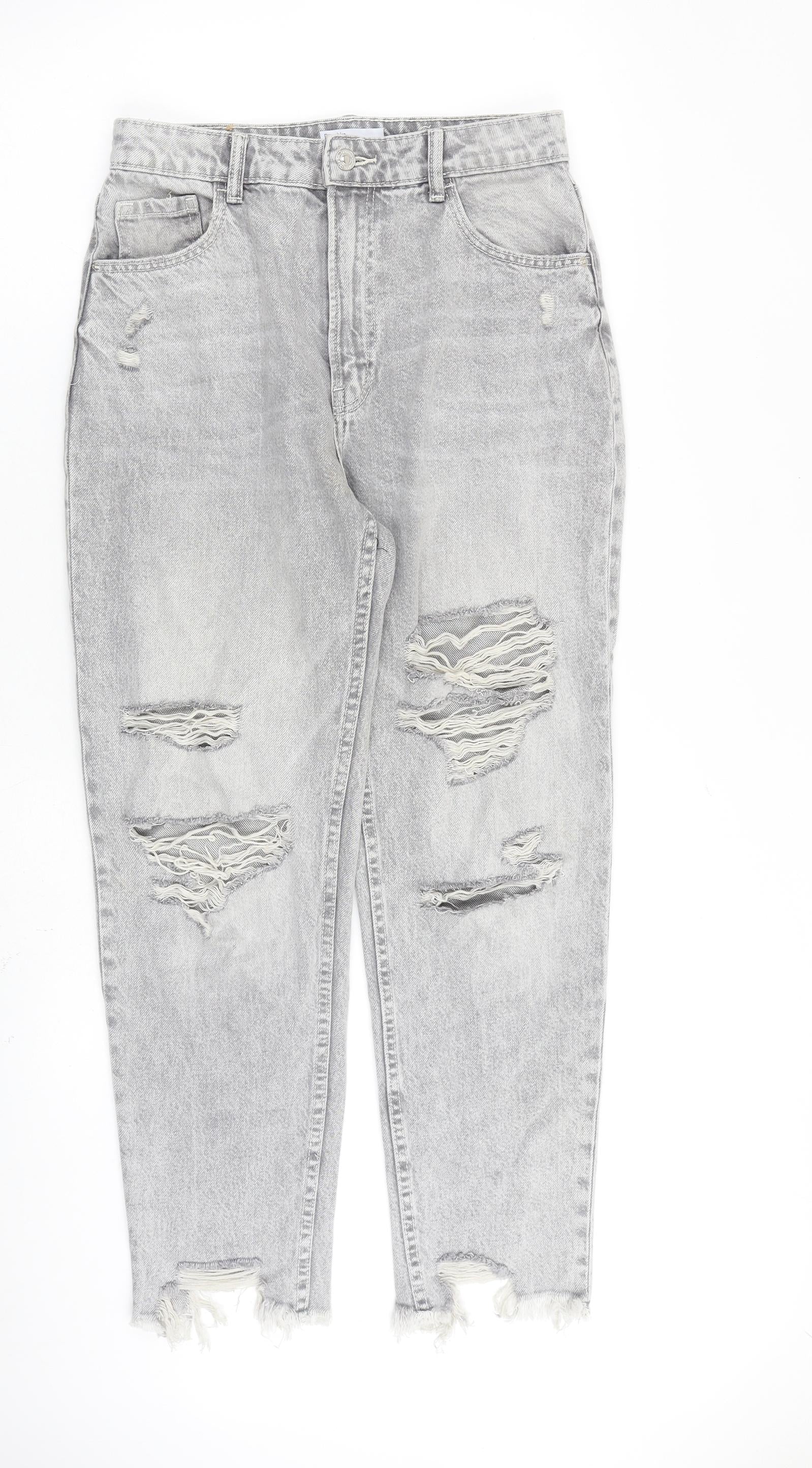 Bershka Womens Grey Cotton Straight Jeans Size 10 L27 in Regular Zip