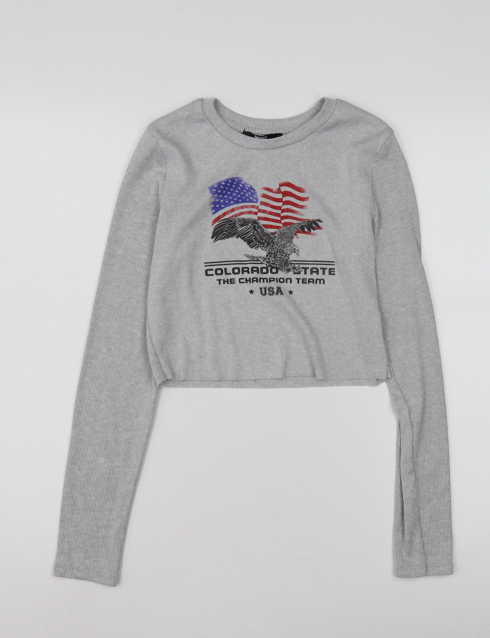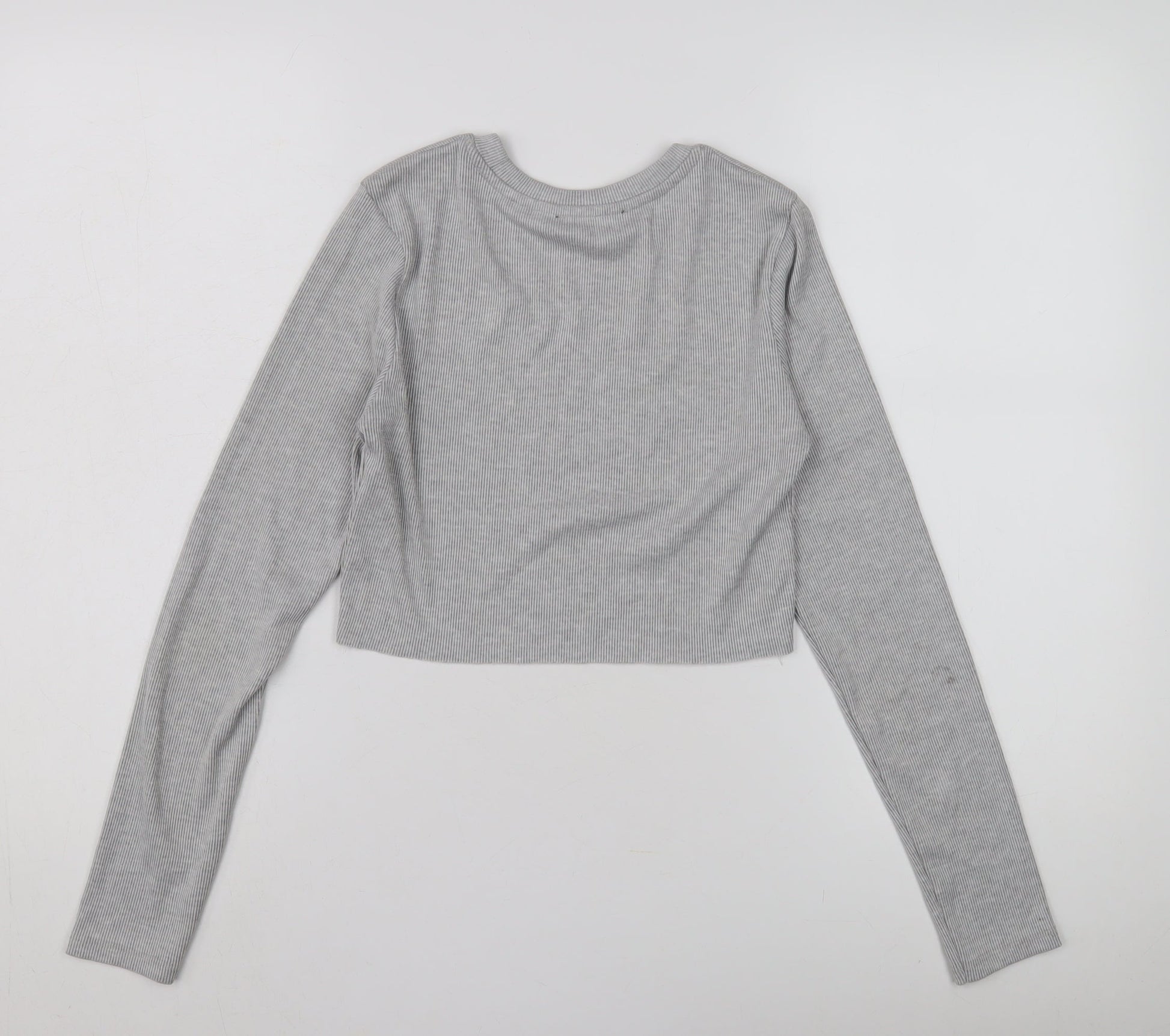 Bershka Women's Grey Cropped T-Shirt, Size 12