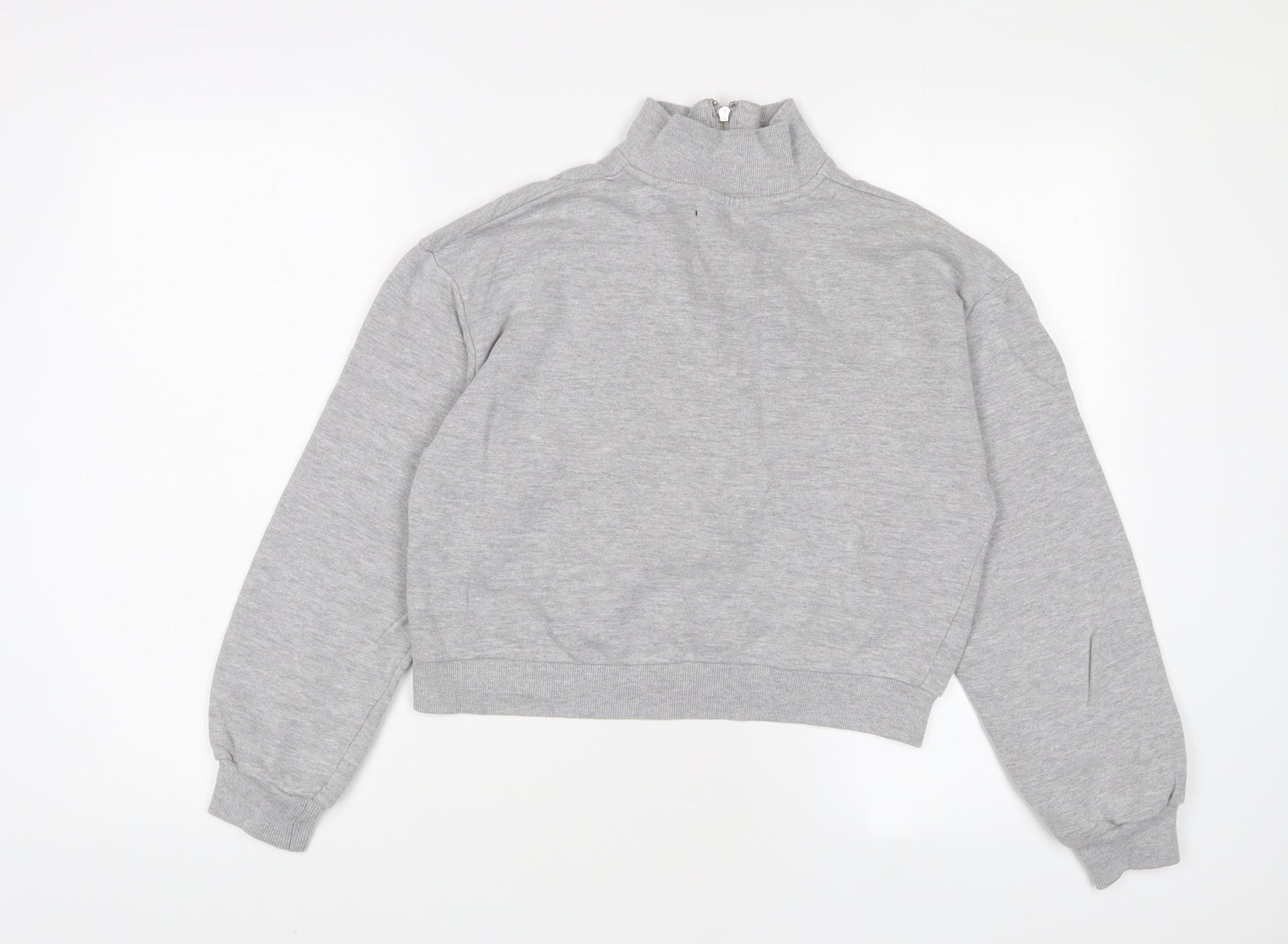 Bershka Womens Grey Striped Cotton Pullover Sweatshirt Size XS Zip - Embroidered
