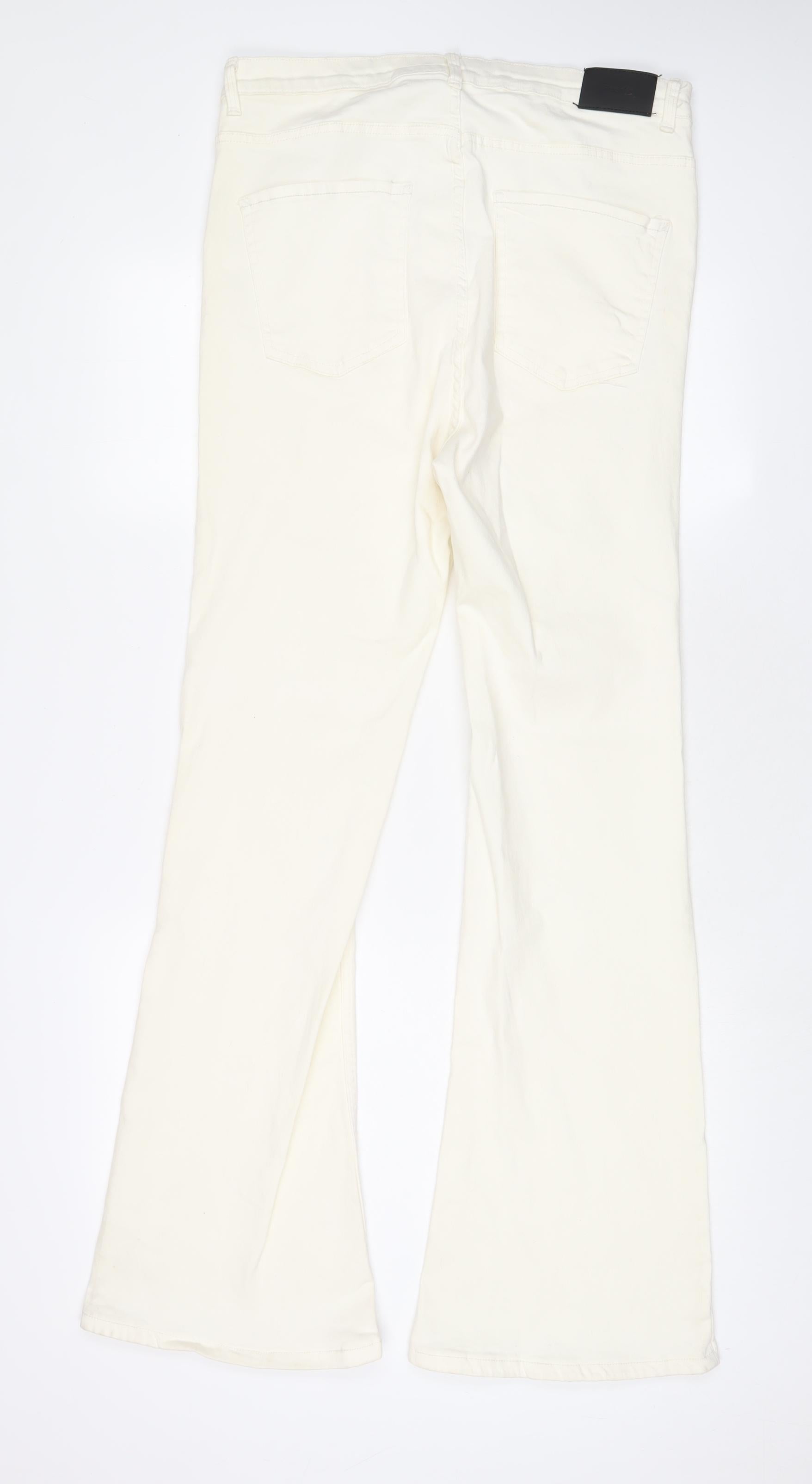 Bershka Womens Ivory Cotton Flared Jeans Size 16 L32 in Regular Zip