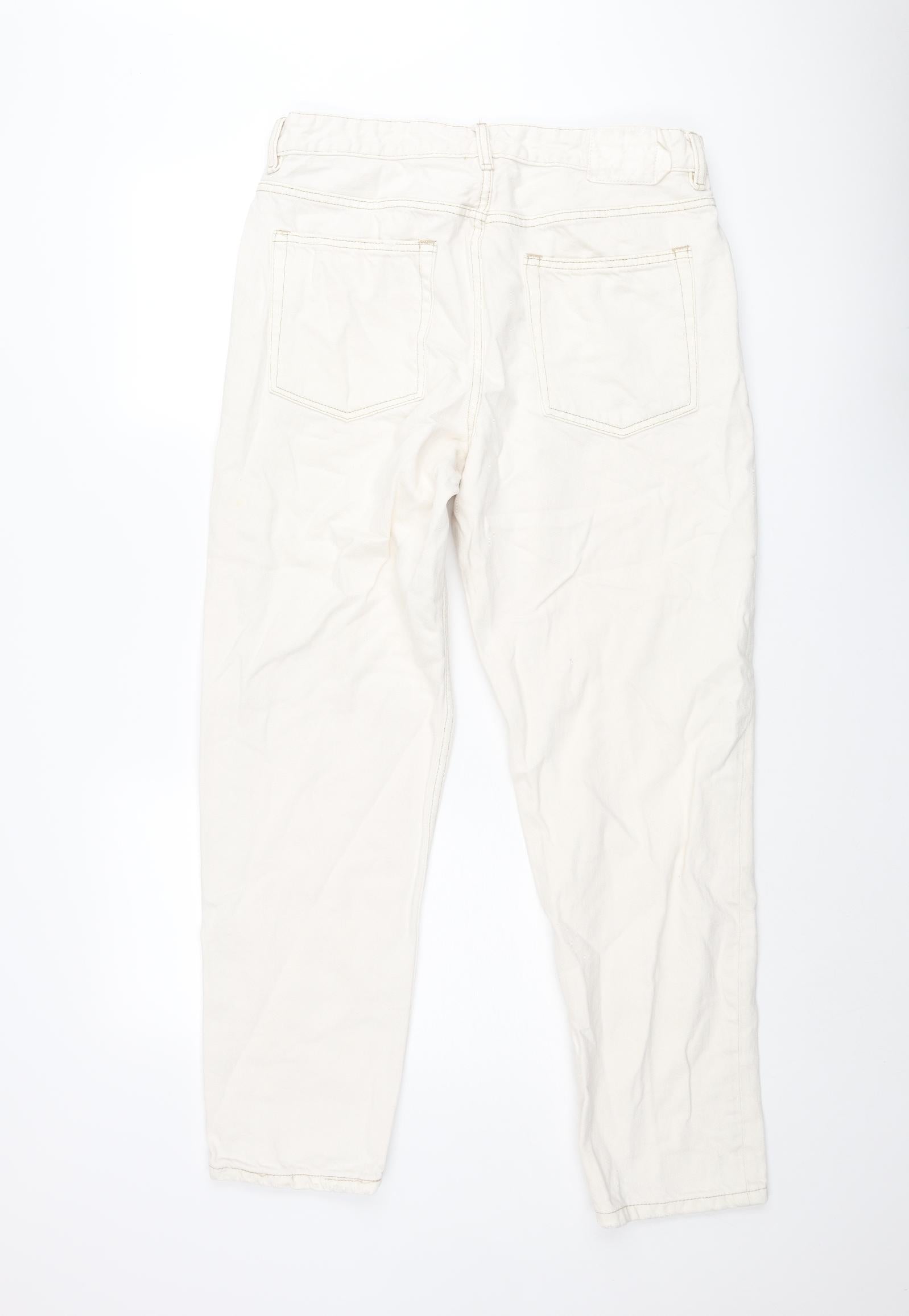 Bershka Womens Ivory Cotton Straight Jeans Size 10 L30 in Regular Zip