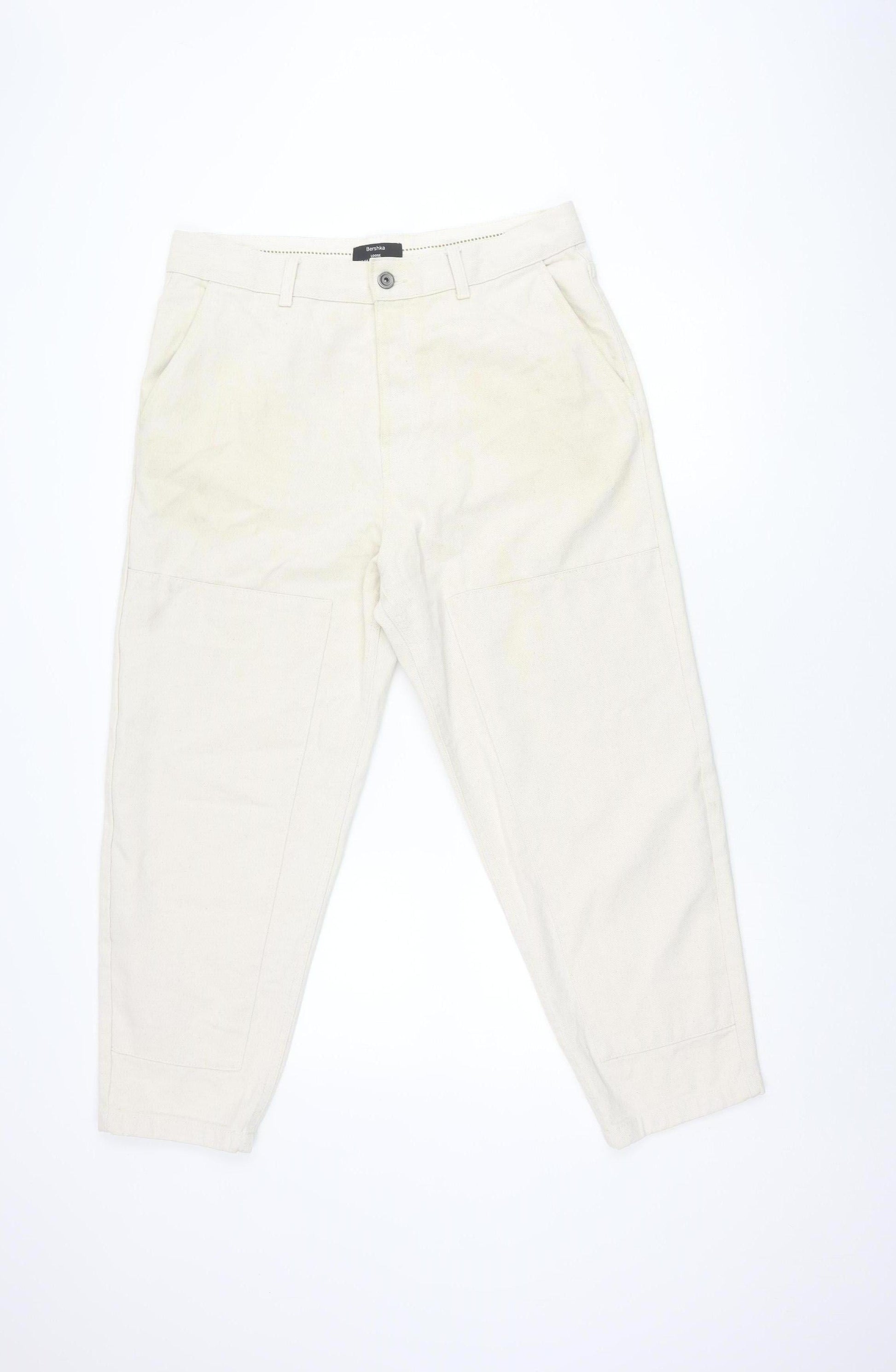 Bershka Women's Ivory Relaxed Cotton Trousers