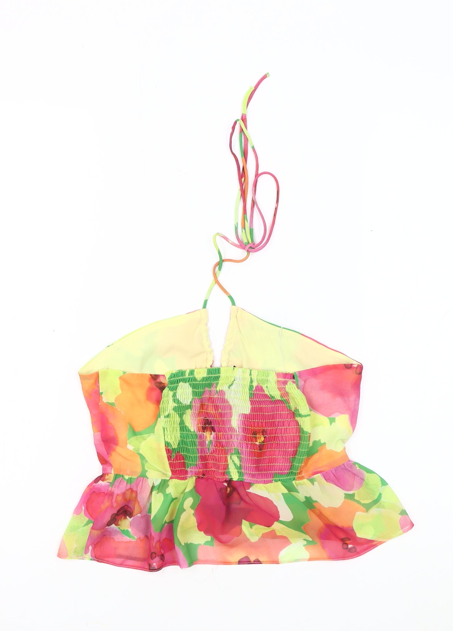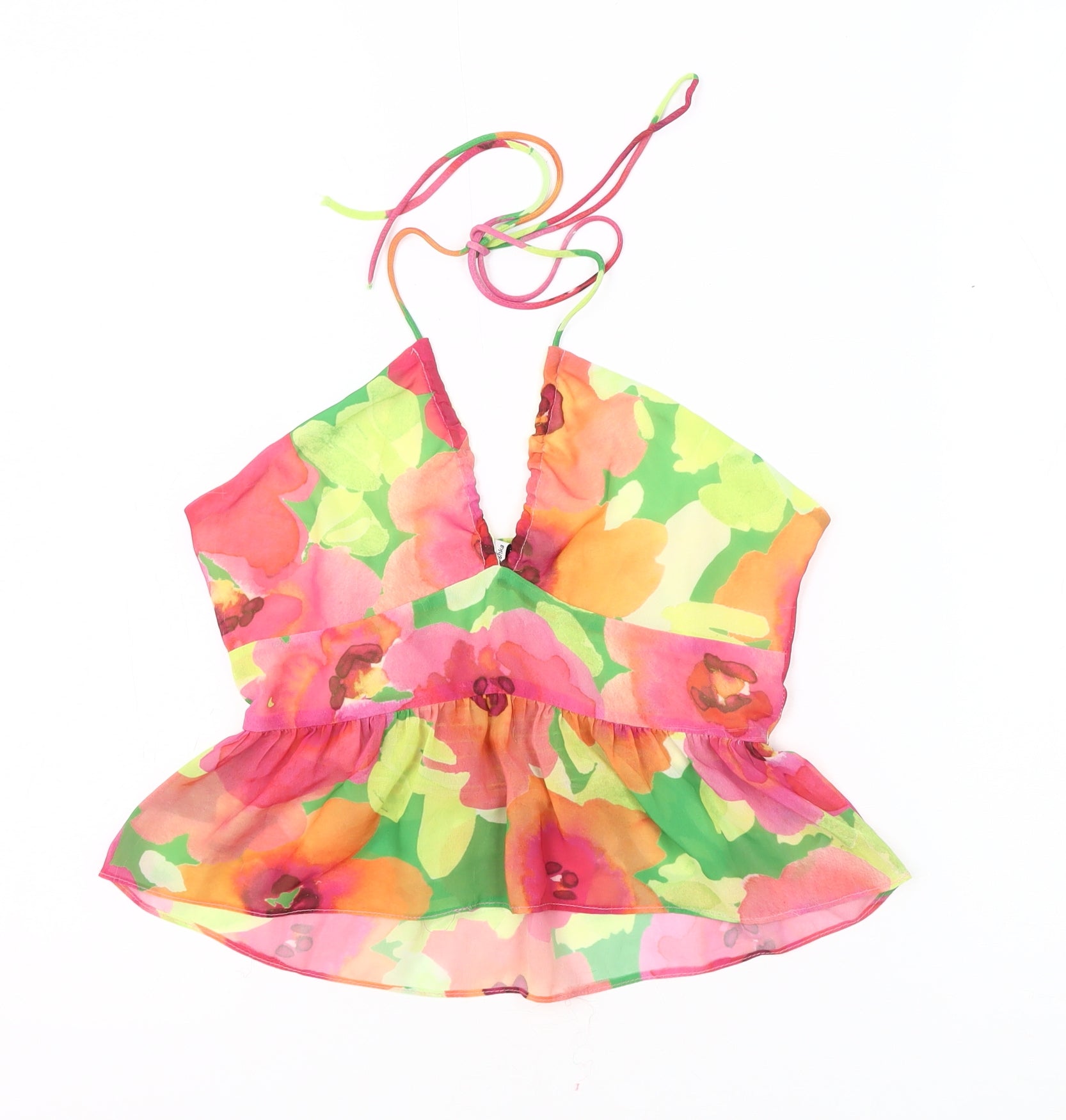 Bershka Women's Multicoloured Floral Halter Camisole Blouse