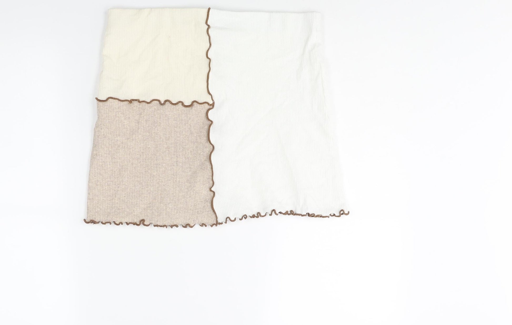 Bershka Womens Multicoloured Geometric Cotton Mini Skirt Size M - Exposed Seam Colourblock