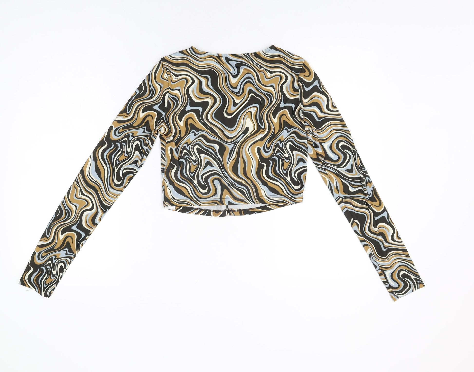 Bershka Womens Multicoloured Geometric Polyester Basic Button-Up Size S Round Neck