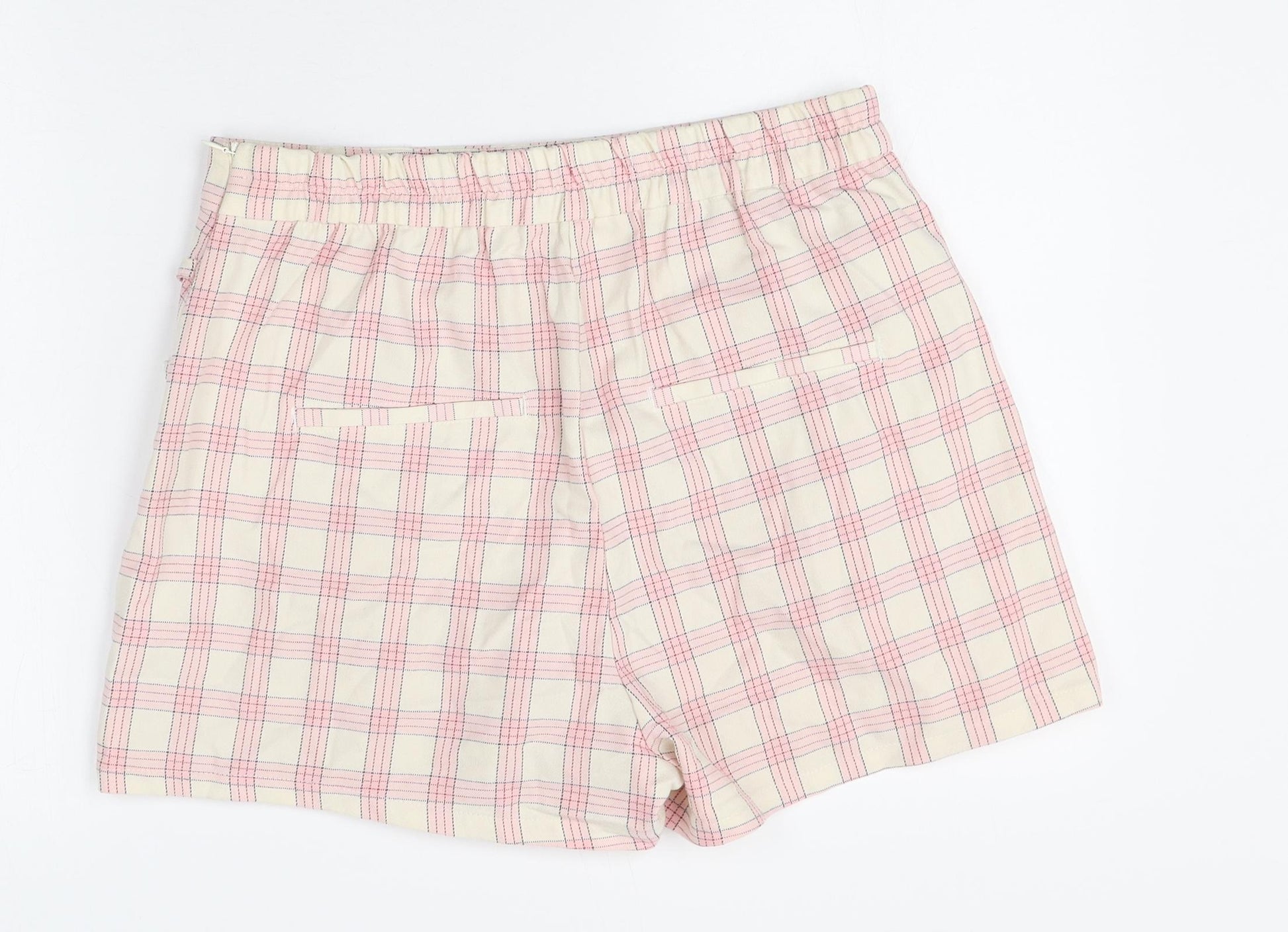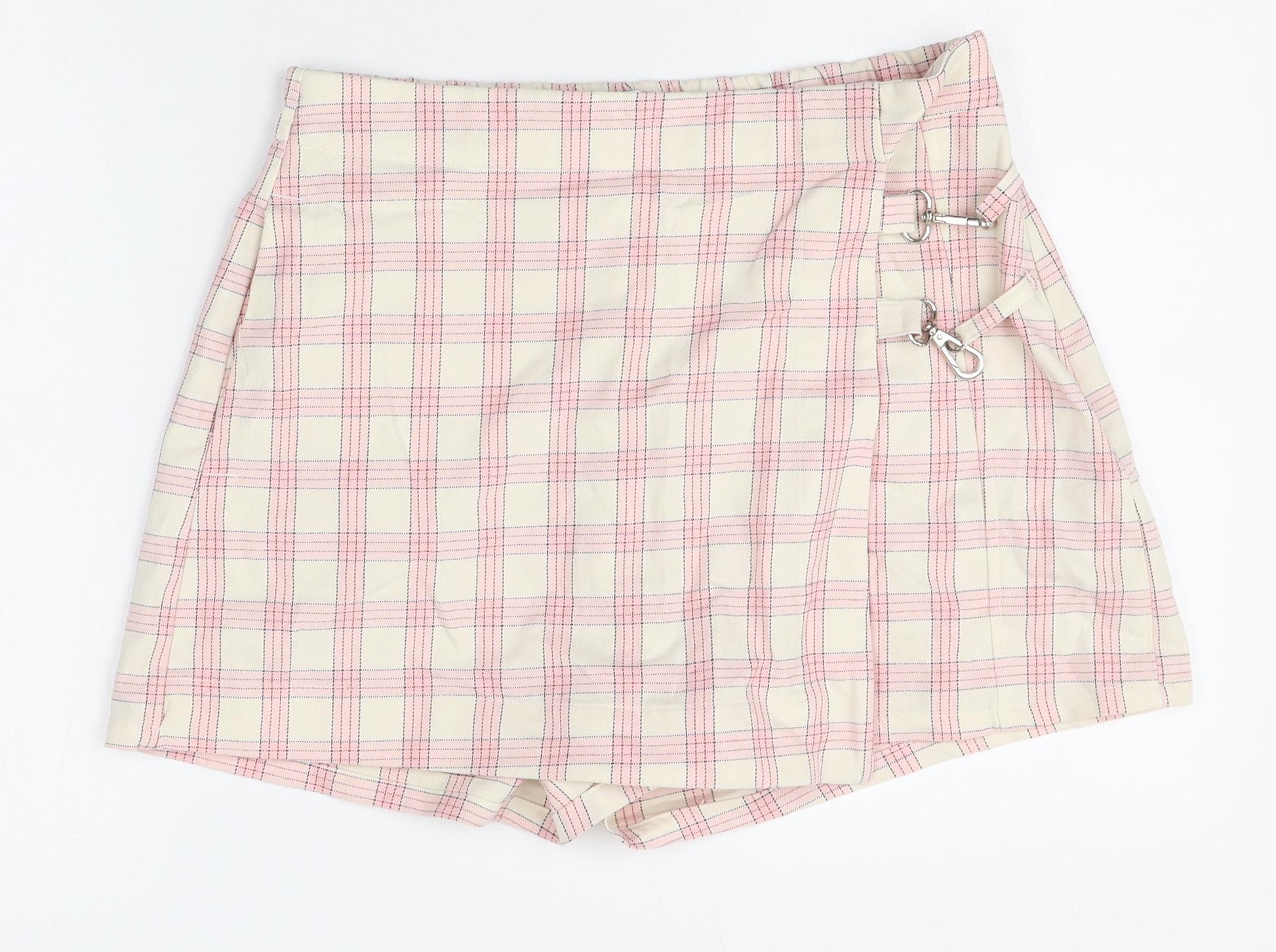 Bershka Womens Multicoloured Plaid Polyester Basic Shorts Size L Regular Zip