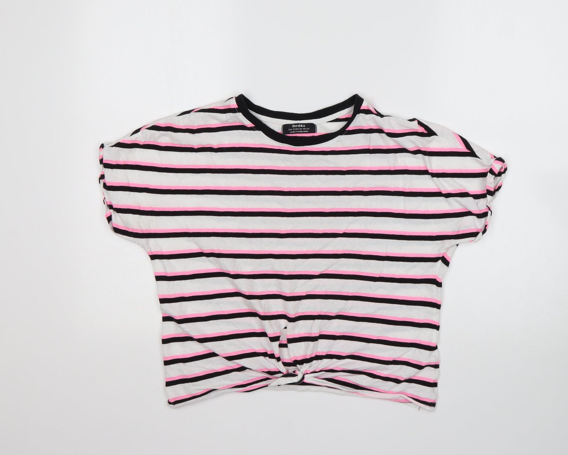Bershka Womens Multicoloured Striped Cotton Basic T-Shirt Size XS Round Neck