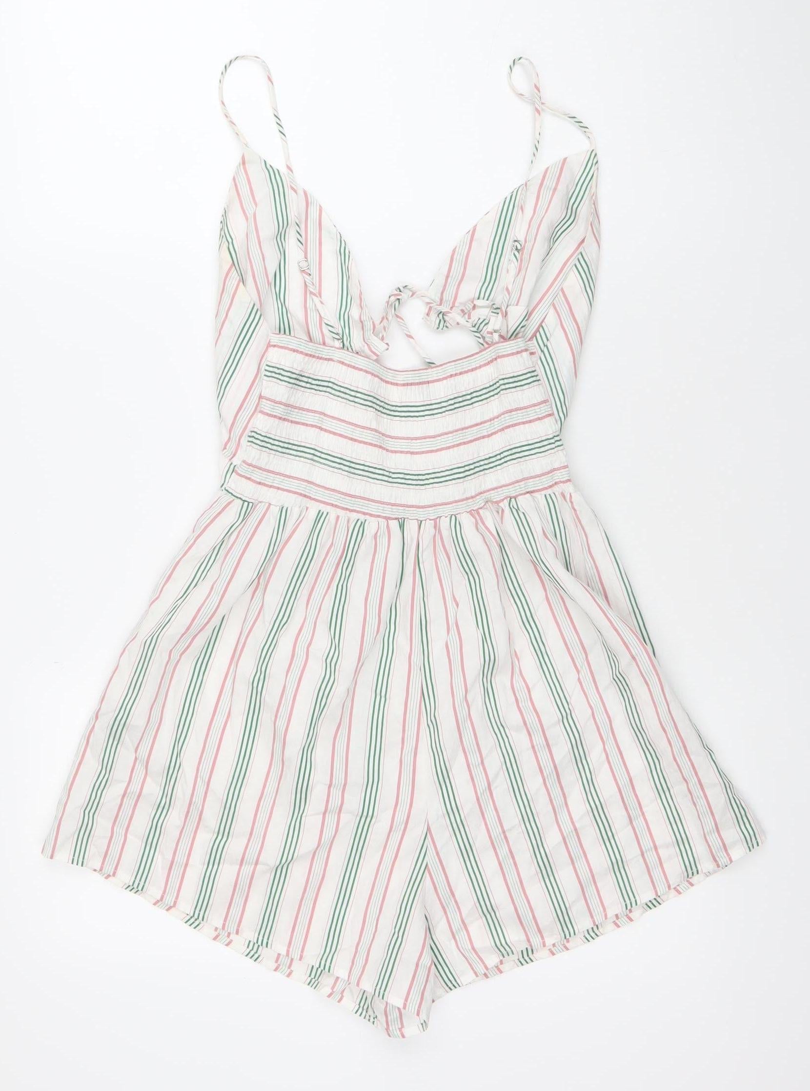 Bershka Womens Multicoloured Striped Playsuit Size 6 V-Neck Summer