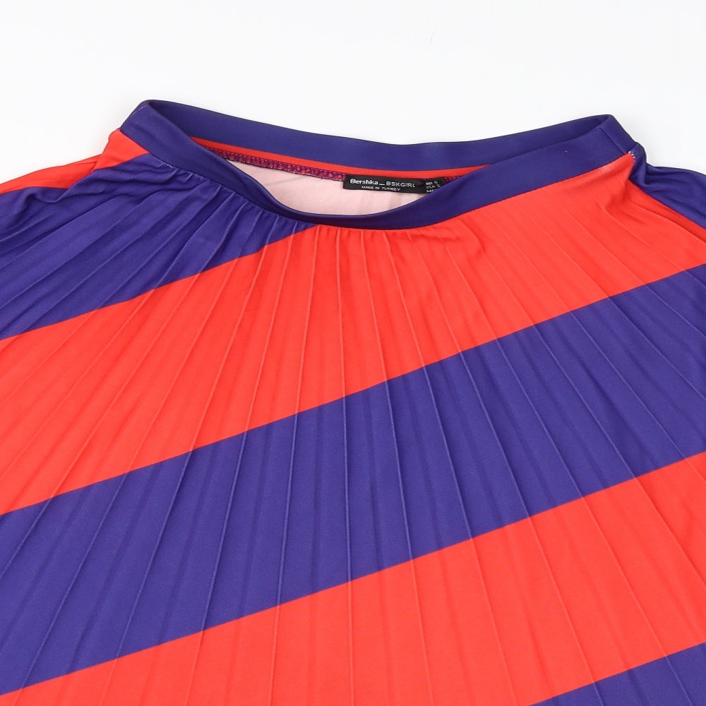 Bershka Womens Multicoloured Striped Pleated Skirt Size S