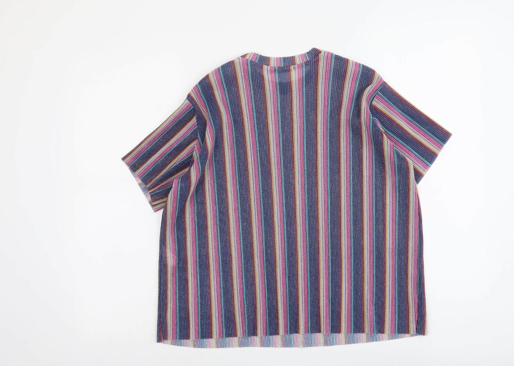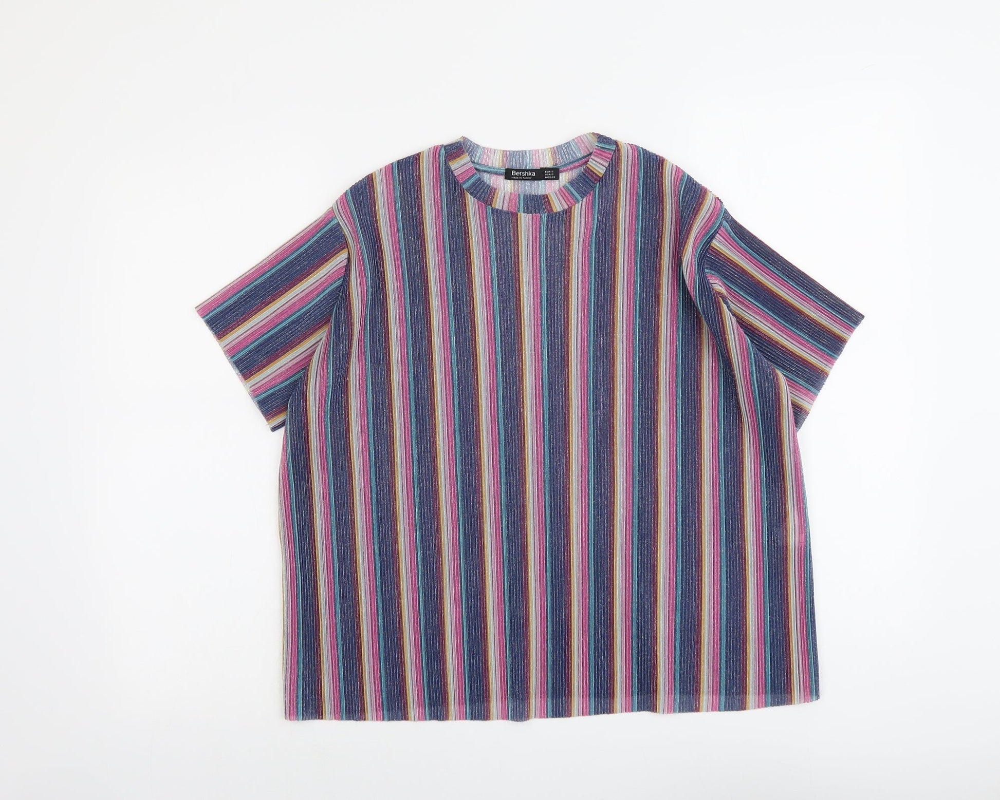 Bershka Womens Multicoloured Striped Polyester Basic T-Shirt Size S Round Neck