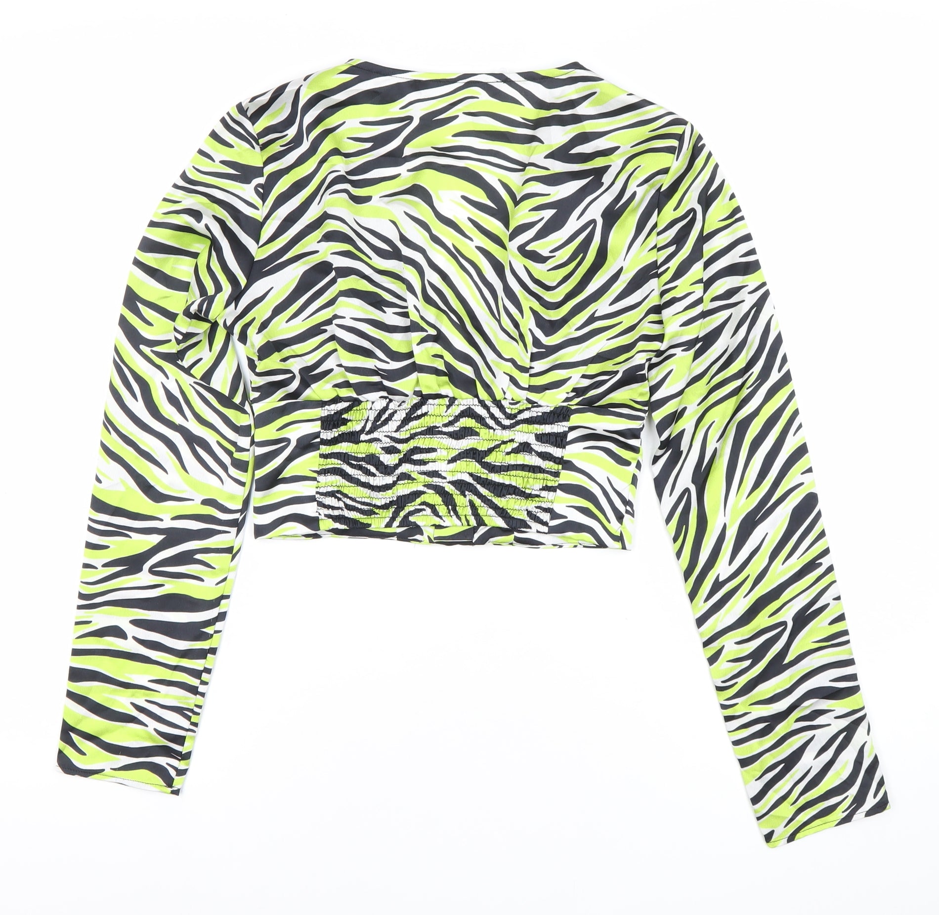 Bershka Womens Multicoloured Zebra Print Cropped Blouse Size 8