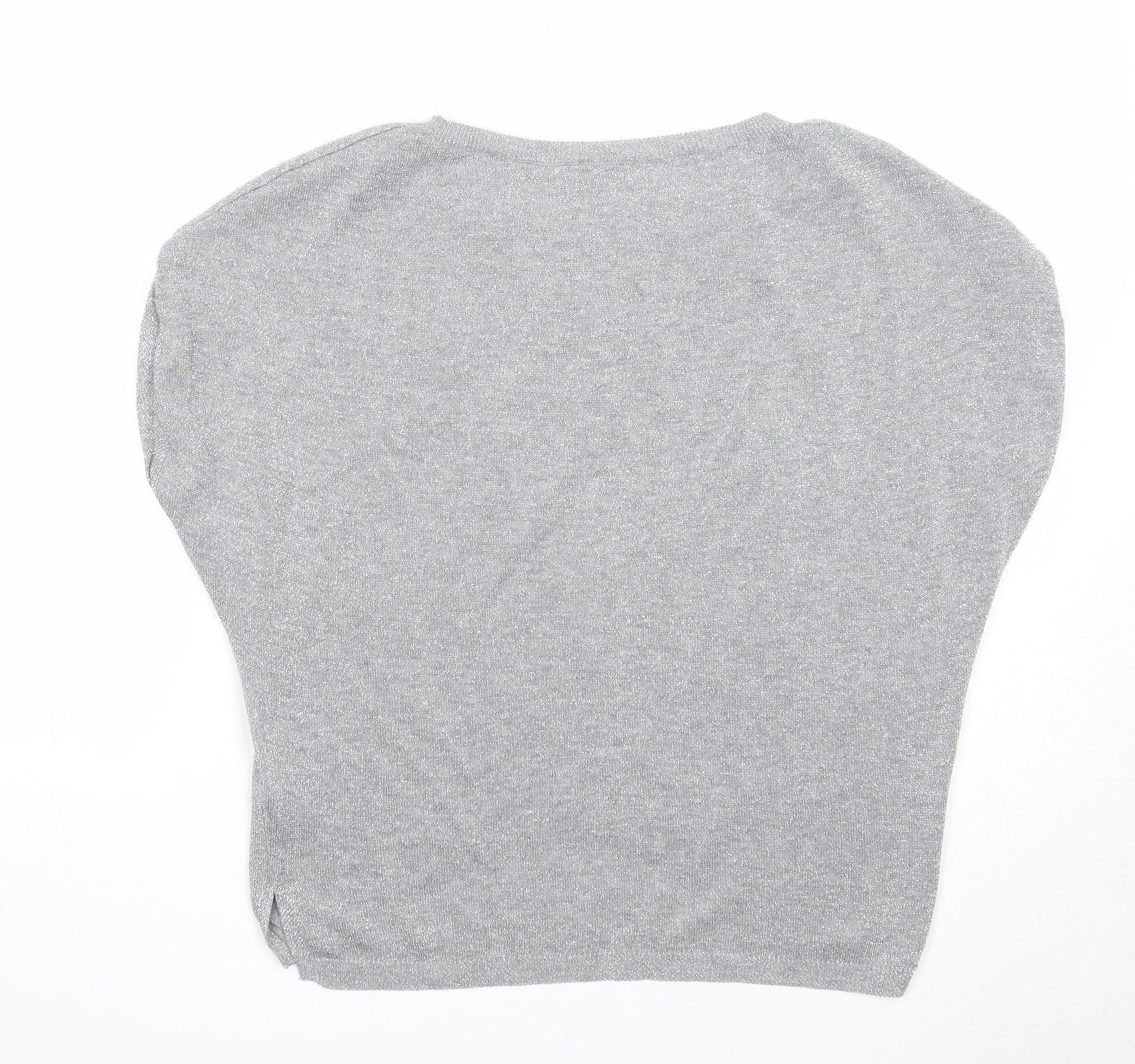 Bershka Womens Silver Cotton Basic Blouse Size S Round Neck