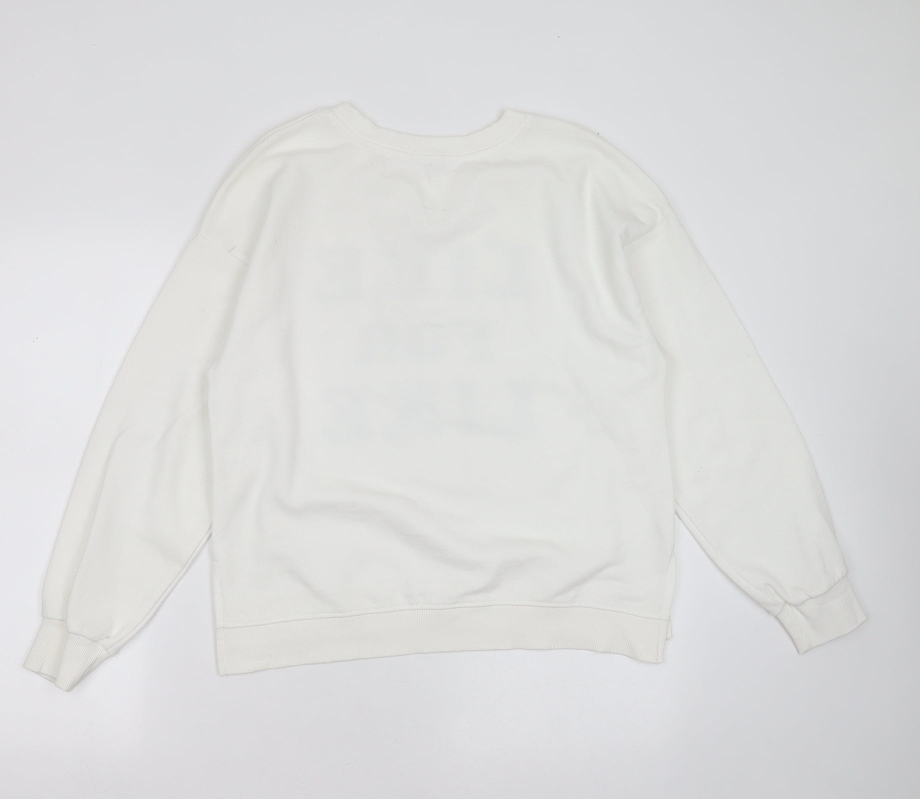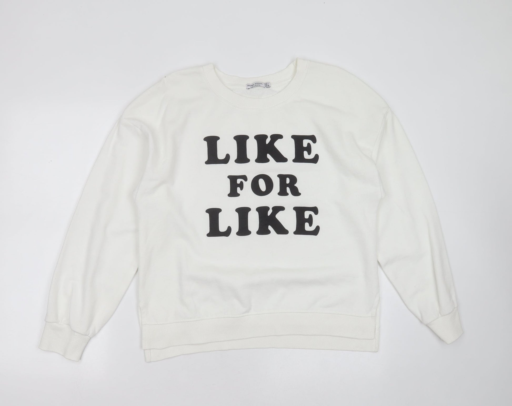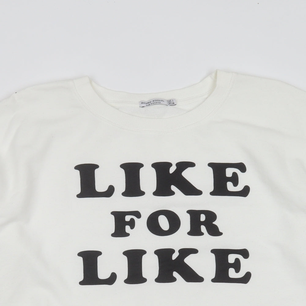 Bershka Womens White Cotton Blend Pullover Sweatshirt Size L - like for like