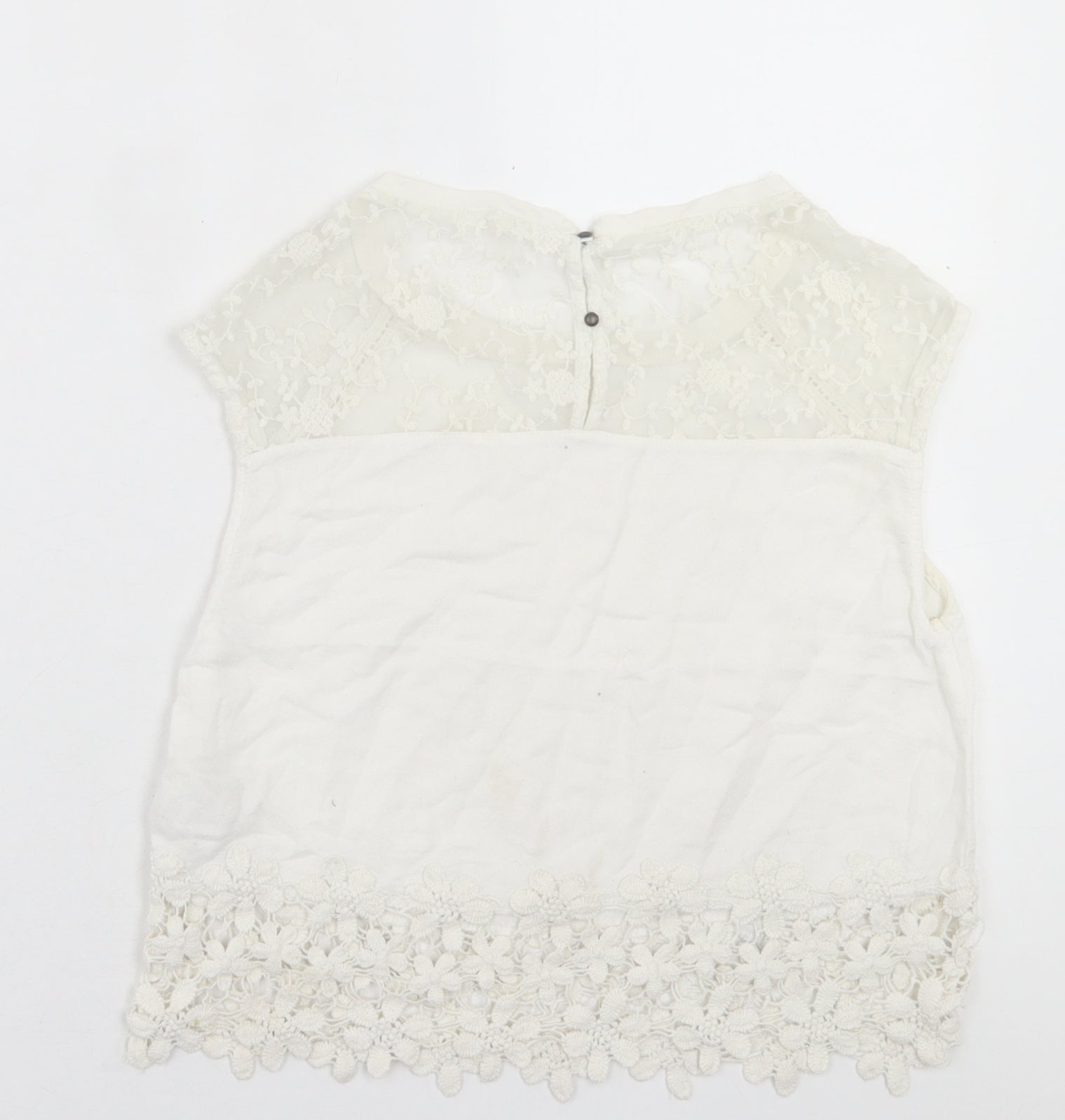 Bershka Womens White Cotton Cropped Size S Crew Neck
