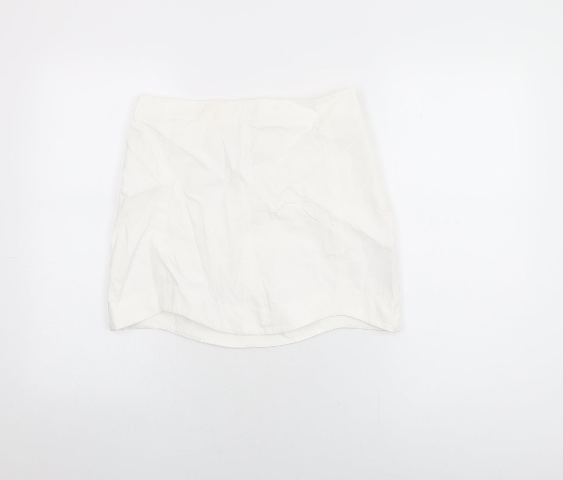 Bershka Womens White Cotton Mini Skirt Size M Zip