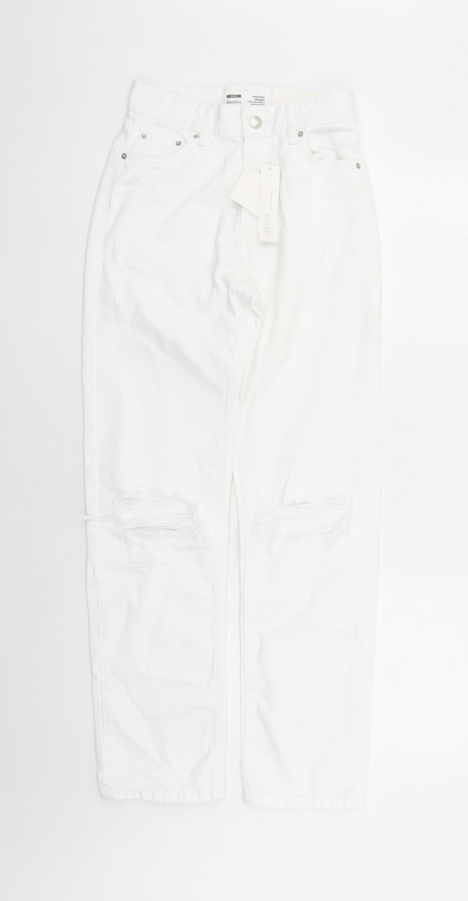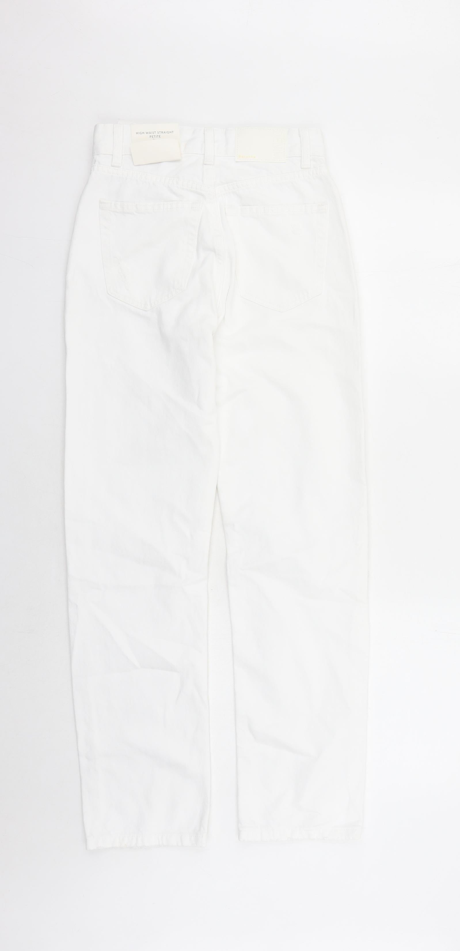 Bershka Womens White Cotton Straight Jeans Size 26 in L29 in Regular Zip