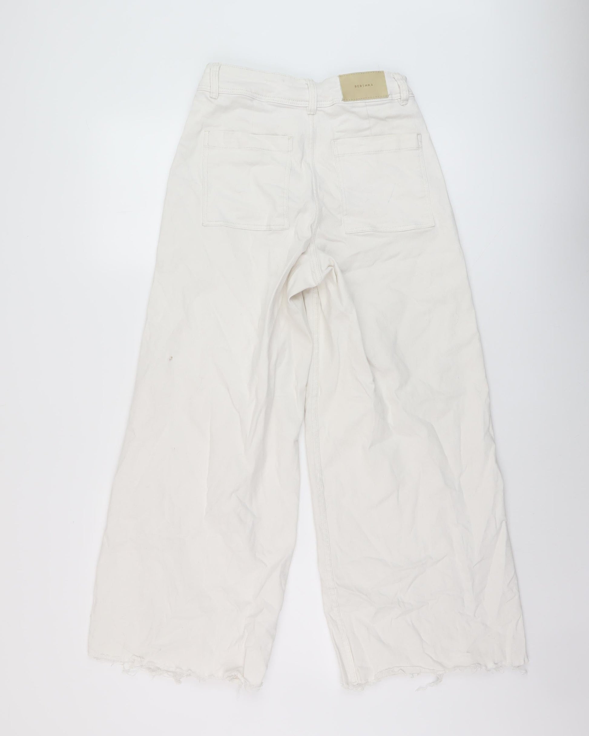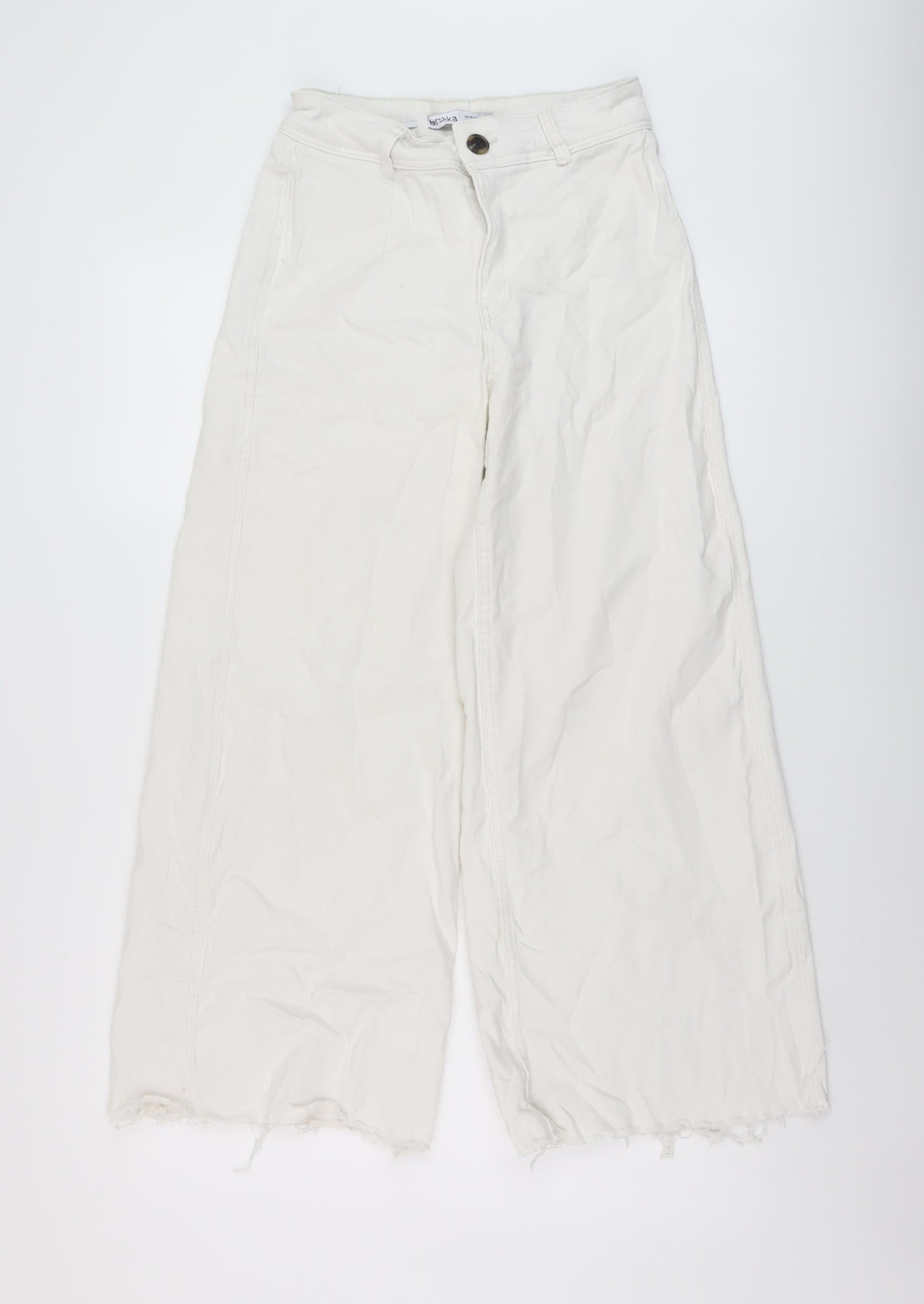 Bershka Womens White Cotton Wide-Leg Jeans Size 8 L26 in Regular Button