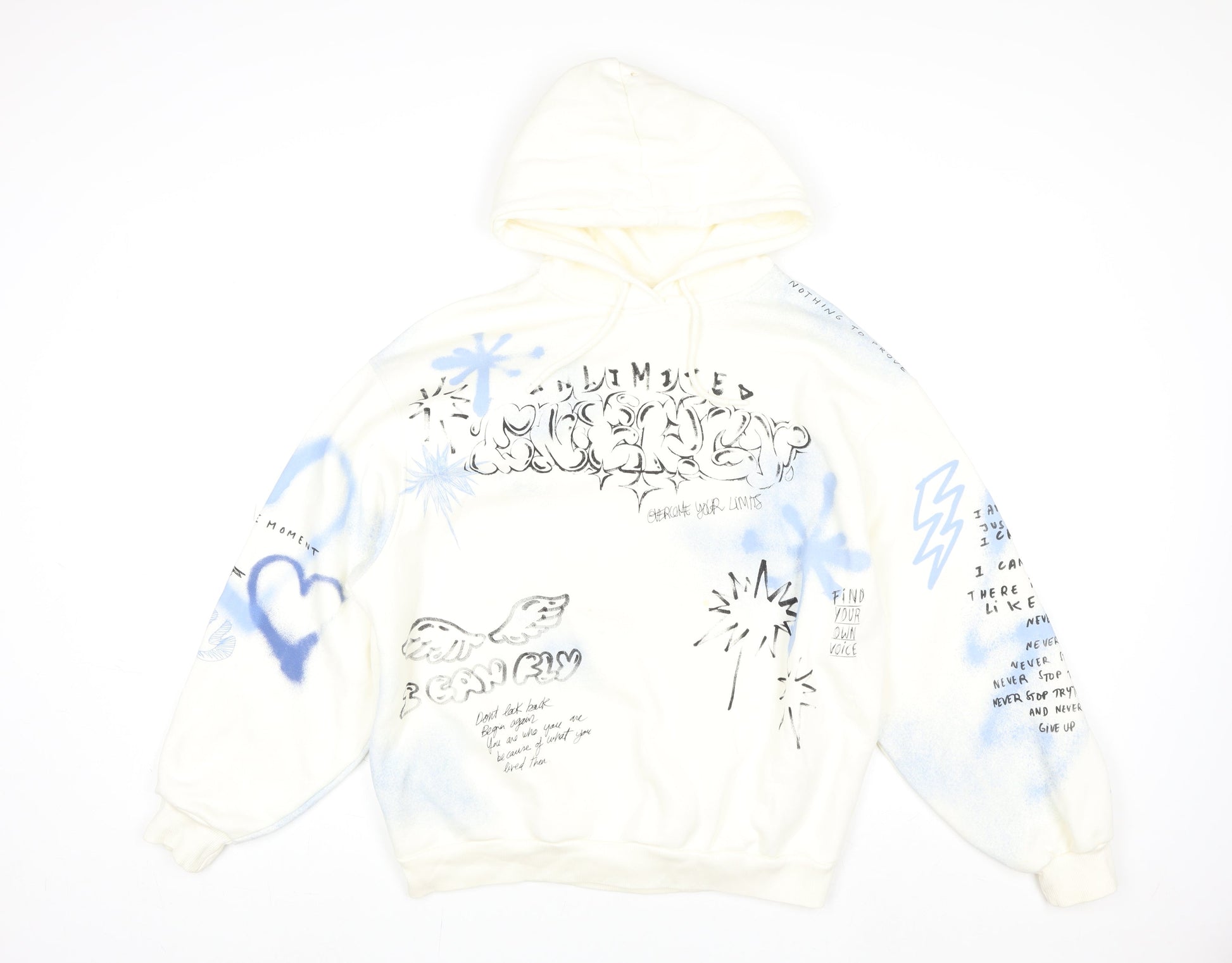 Bershka Womens White Graphic Print Pullover Hoodie Size S