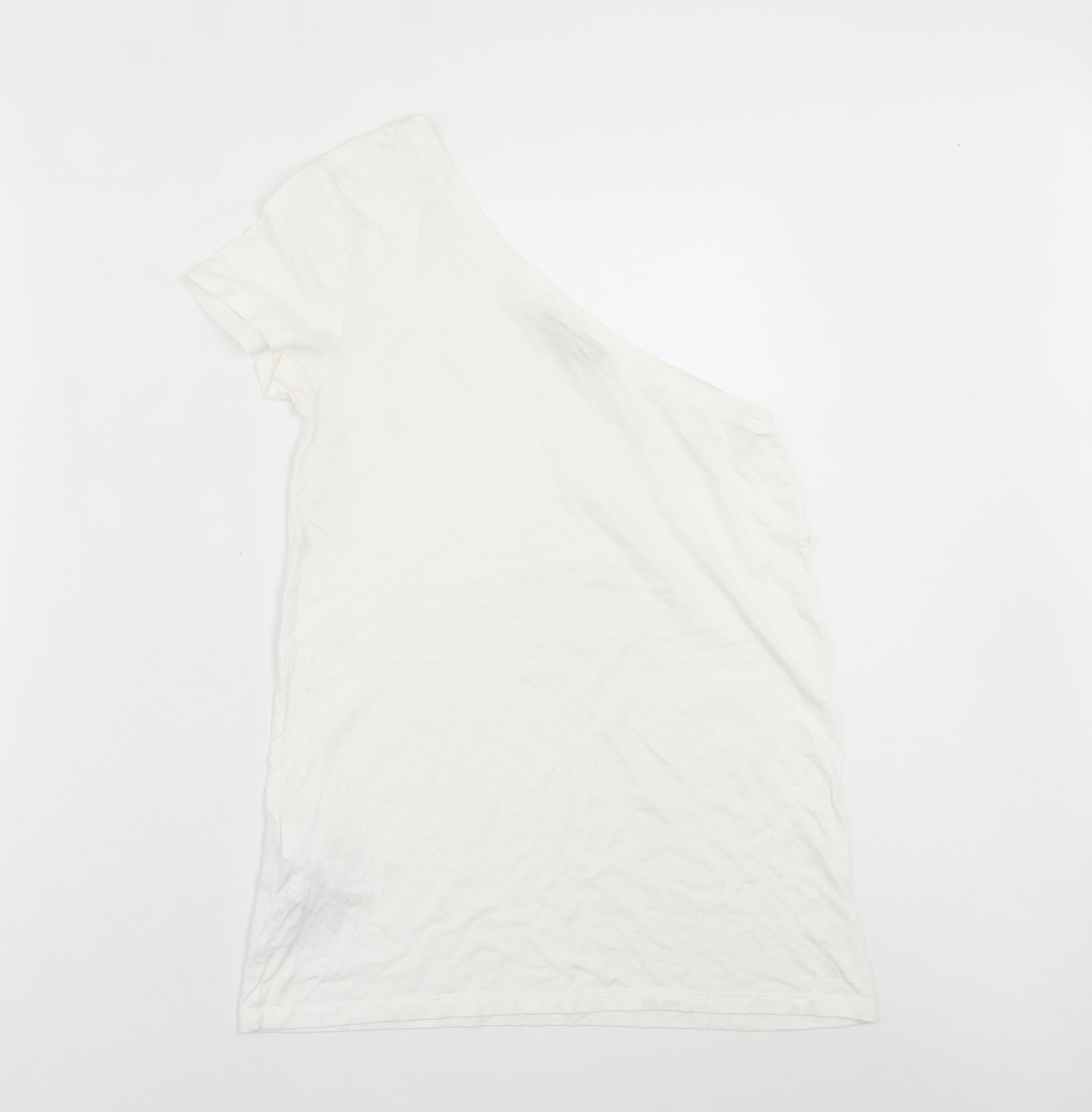 Bershka Womens White Polyester Basic Blouse Size S One Shoulder