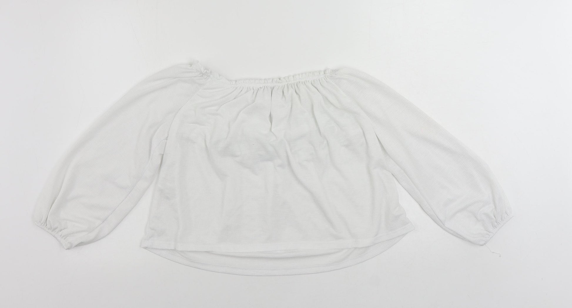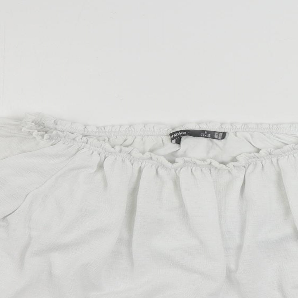 Bershka Womens White Polyester Cropped Blouse Size S Boat Neck