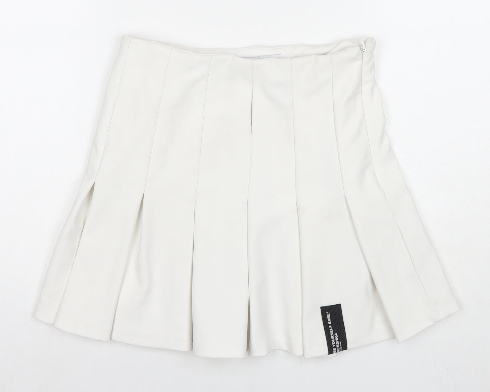 Bershka Womens White Polyester Pleated Skirt Size M Zip