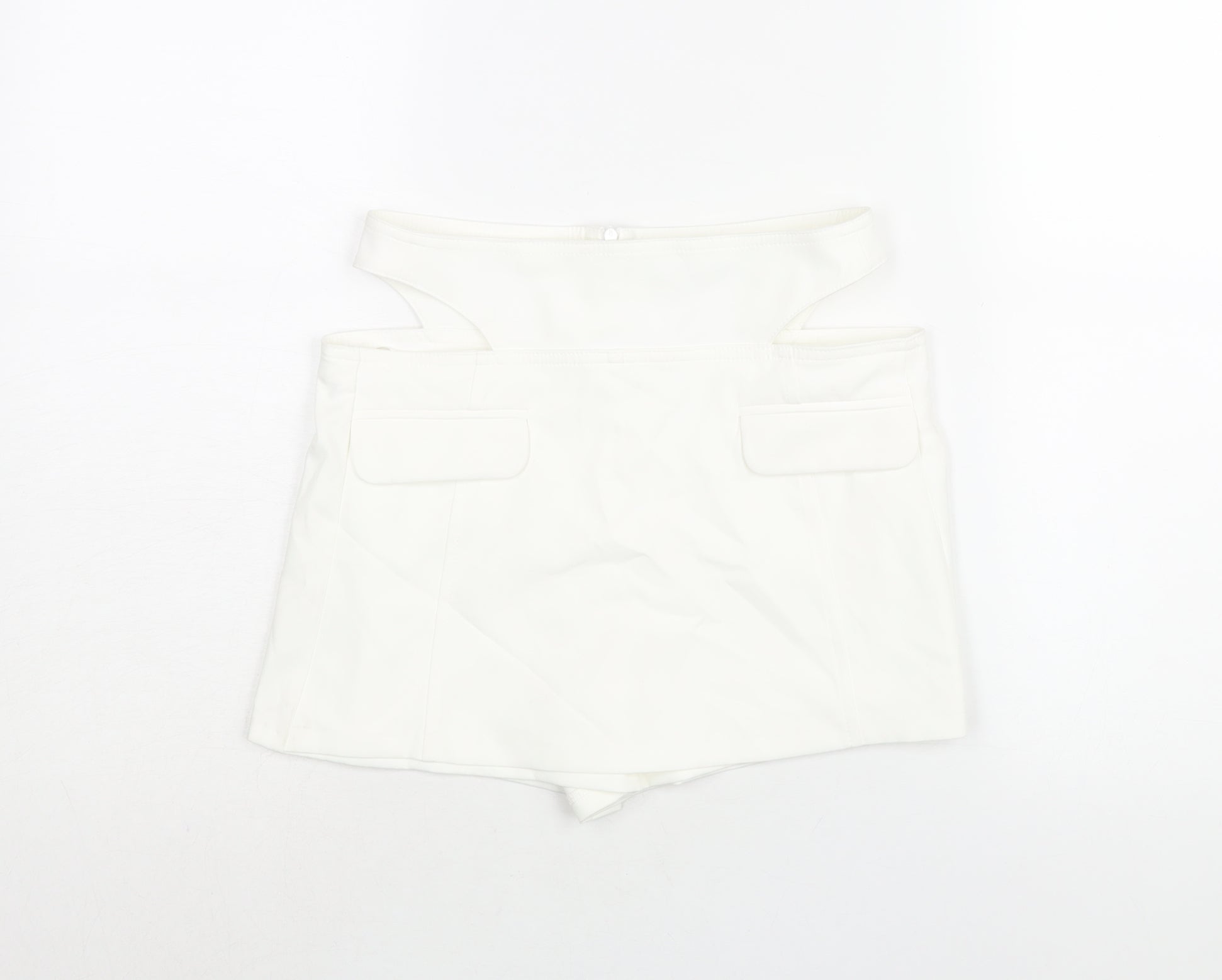 Bershka Womens White Polyester Skort Skirt Size 8 Zip - Cut Out