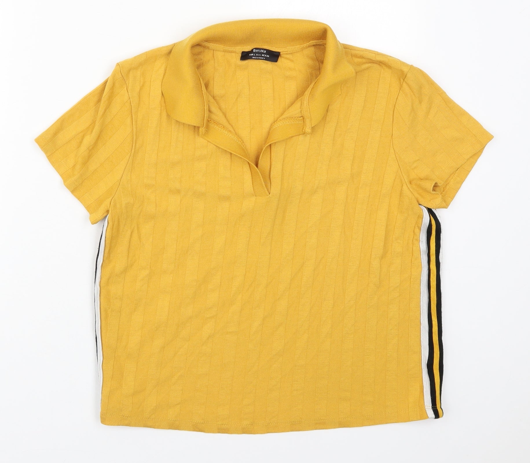 Bershka Womens Yellow Cotton Basic Polo Size L Collared