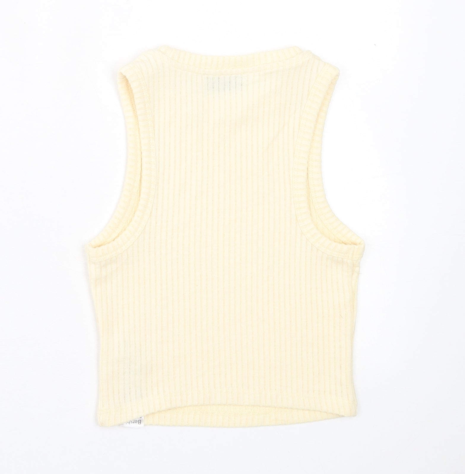 Bershka Womens Yellow Polyester Cropped Tank Size XS Crew Neck